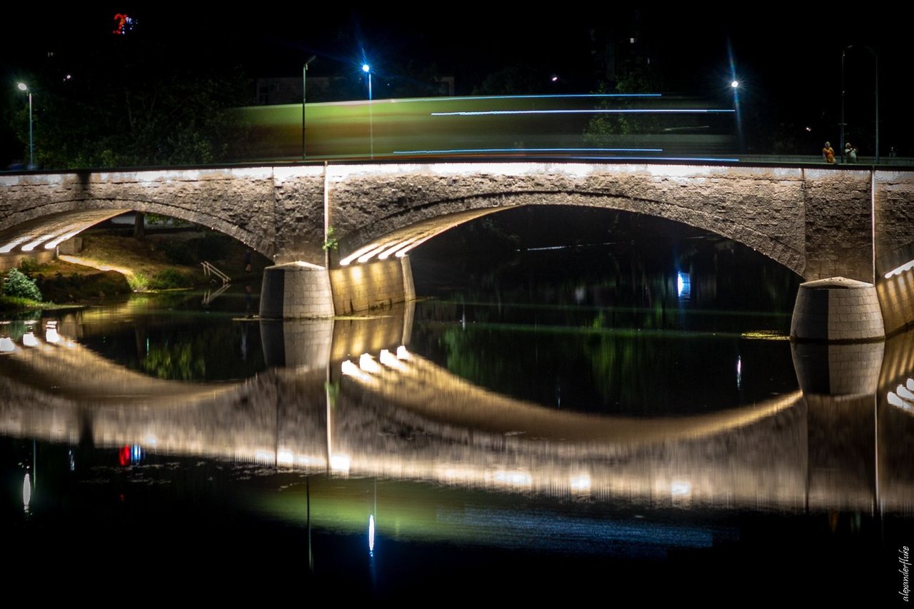 Stone houses, restaurant lights, bridges: the water doesn't copy this world, it gives it a professional retouch. It softens the edges and blurs away the unnecessary motion. Above is reality with all its rules. Below is a version for those with a bit of imagination.