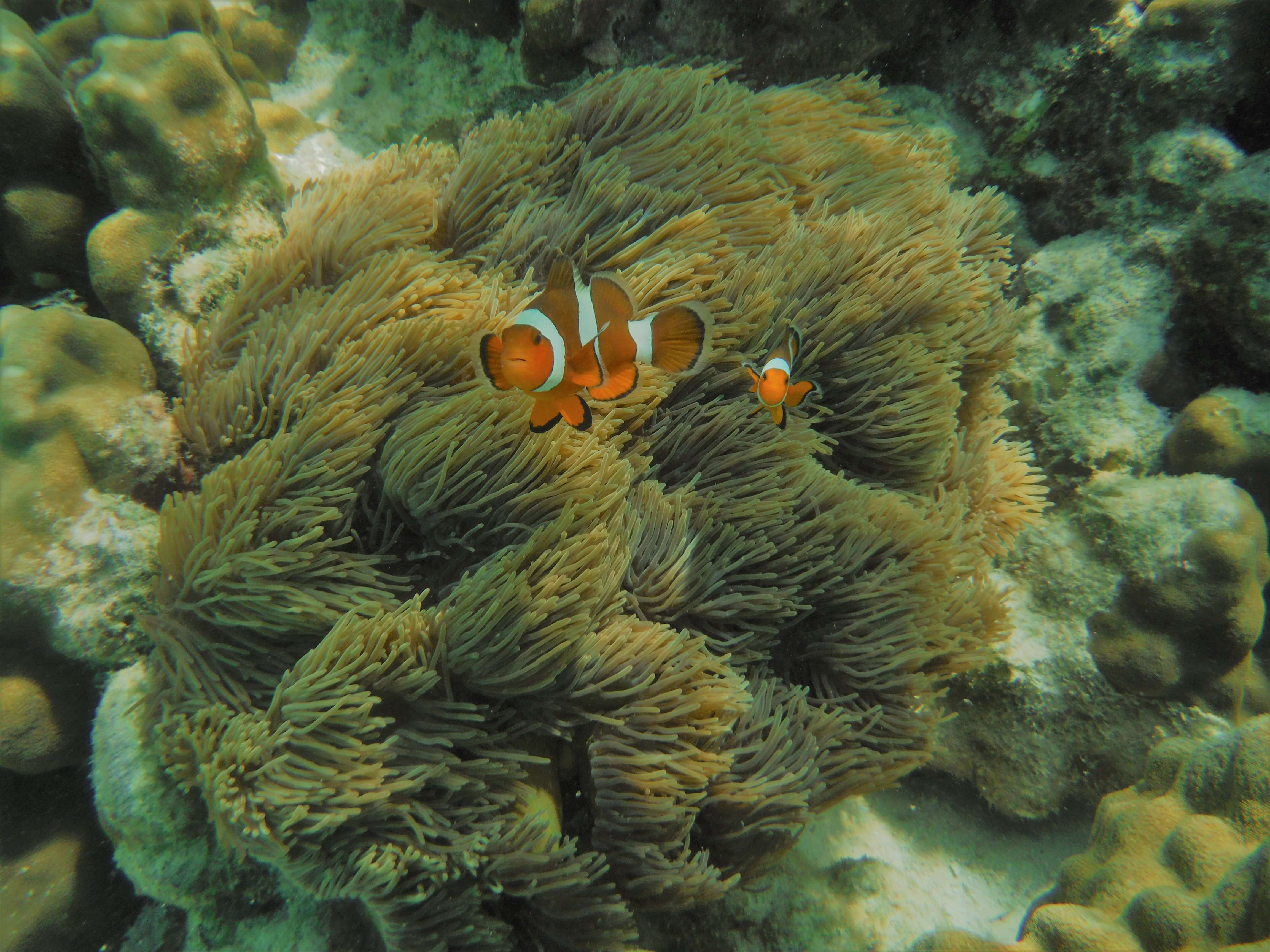 Today I show you two clown fish, they protect their home. They live in a sea anemone, which looks like a plant, but is an animal.