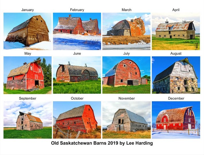 Are you interested in my calendar? If so, I can get you a deal. Go to https://www.createphotocalendars.com/My-Account/Refer/ and enter UASHYV. (This saves you $10 on my calendar.) Then buy the calendar at https://www.createphotocalendars.com/Store/Old+Barns+of+Saskatchewan+2019+Calendar-8922990593. The months' displays are below.