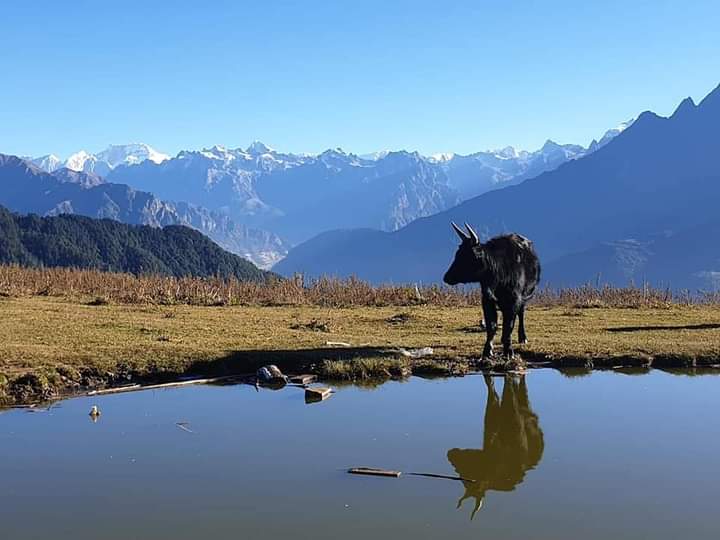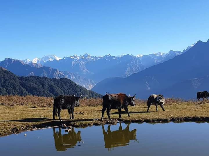 You can see yak grazing in the green pasture here. The mountain seen in the background is known as Langtang and nearby it is Langtang National Park. China is very near to this place. Rasuwa is a famous tourist deatination for people all over the world. Truly a majestic heaven.