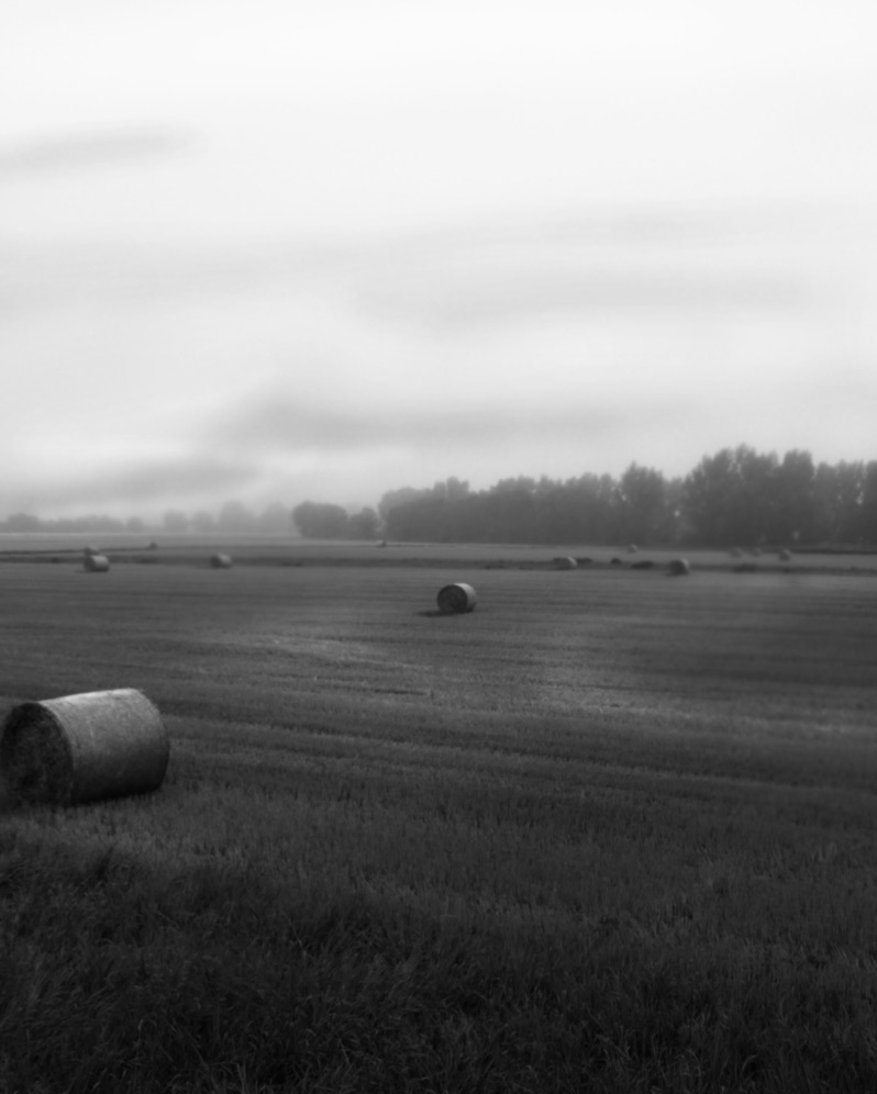 This is a picture of a grain field after its been harvested in late summer. This was also my first attempt at trying to make an ordinary image look more interesting. This image was taken in the morning before the sun completely ate through the morning fog. I used Lightroom to amplify the haze. Also, I traced the rays of sun that were shining onto the field.