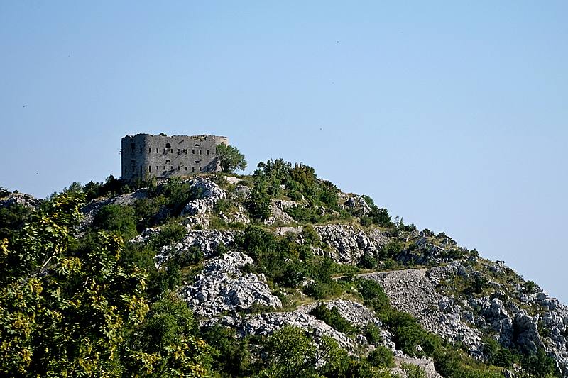 From our point of view, Fort Kosmač is an announcement… only one more road turn, and we will finally see the Adriatic sea. Budva to the right of the photo, and Bečići to the left…