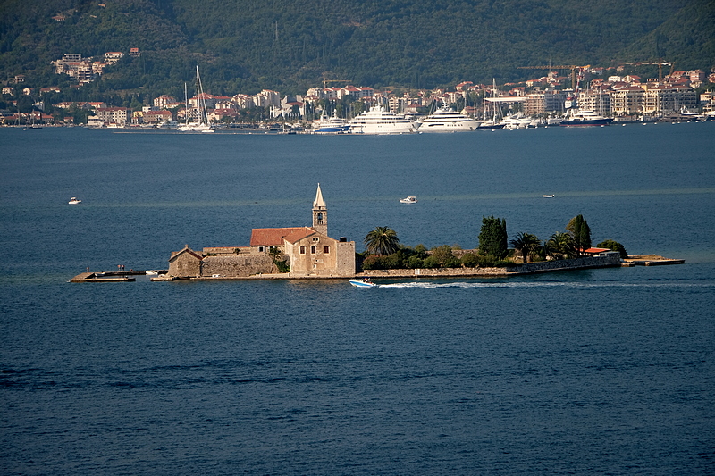 Behind the island you can see Porto Montenegro, an exclusive marina & yachting paradise as a part of the town of Tivat. It’s built (and is still in under construction) with the richest in mind. It is advertised as “The safest marina in the Mediterranean” — Porto Montenegro's marina has been crafted and built by a team of yachting professionals with an intimate understanding of the needs of captains, crew and owners…