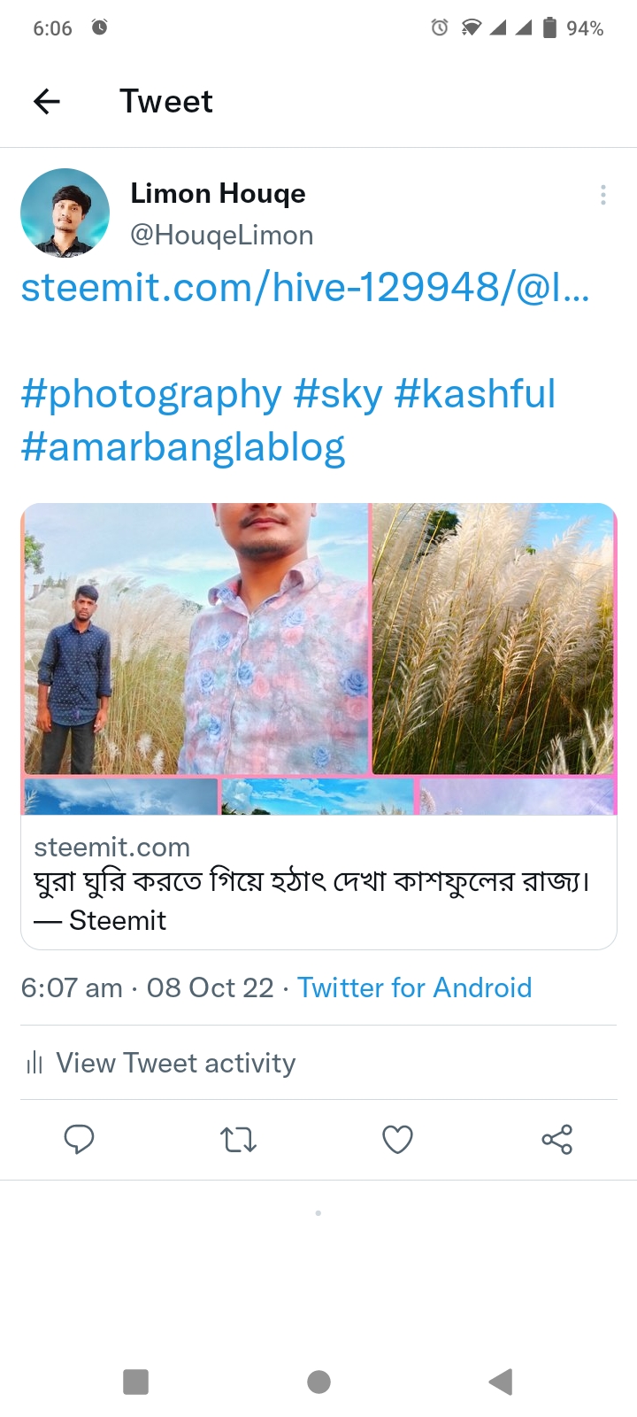 আমি মোঃ লিমন হক। আমার স্টীমিট একাউন্ট @limon88. আমি একজন বাঙালি আর আমি বাঙালী হিসেবে পরিচয় দিতে গর্ব বোধ করি। আমি স্টীমিটকে অনেক ভালোবাসি। ভালোবাসি পড়তে ও লিখতে ব্লগিং ফটোগ্রাফি মিউজিক রেসিপি ডাই আমার অনেক পছন্দের। আমি ঘুরতে অনেক ভালোবাসি। আমি একজন মিশুক ছেলে। আমি সবার সাথে মিশতে ভালোবাসি। আমি আমার মতো।