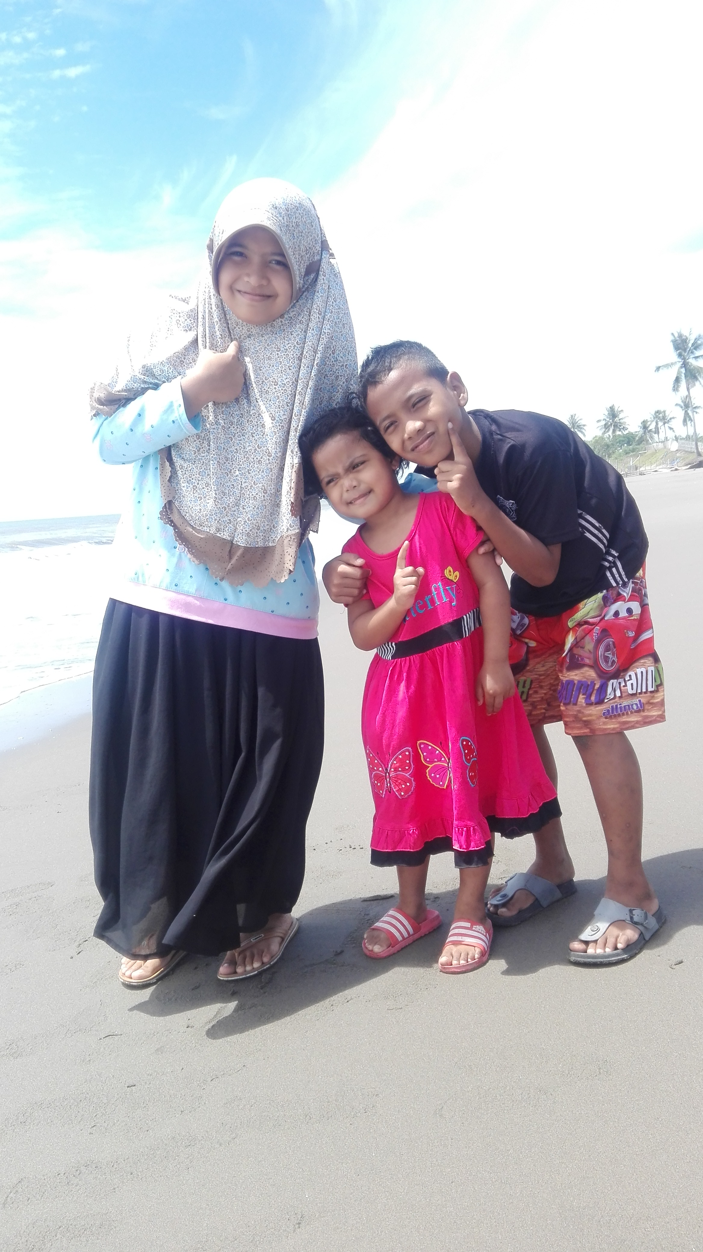 Mengisi liburan pilkada nasional, anak-anakku minta main ke pantai Selat Malaka....