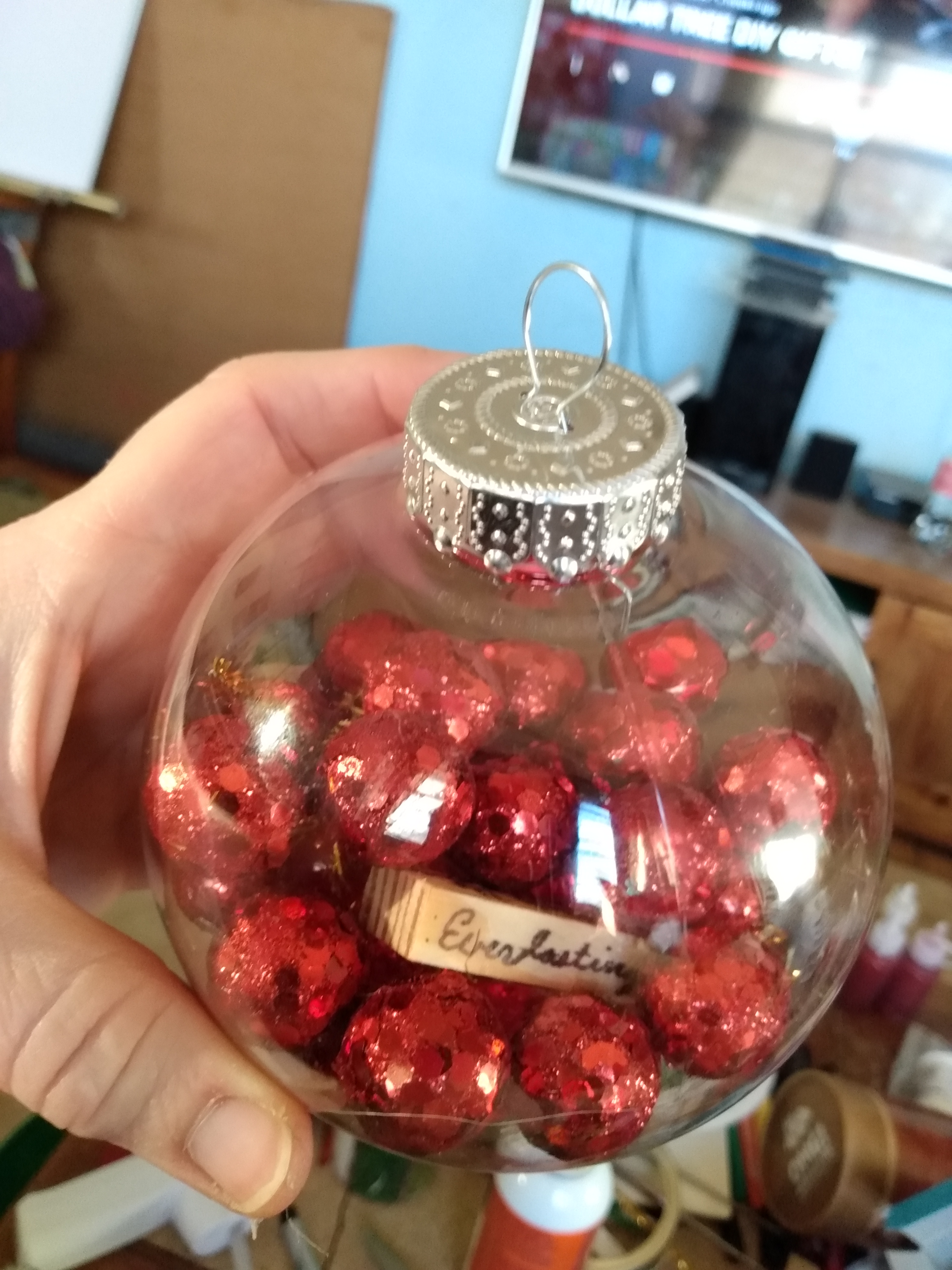 The above ornament has messages written on every side of the block. You shake the ornament to read the Christmas messages. This one says, "For into us a child is born.", "Wonderful Counselor", "Mighty God" and, "Everlasting".