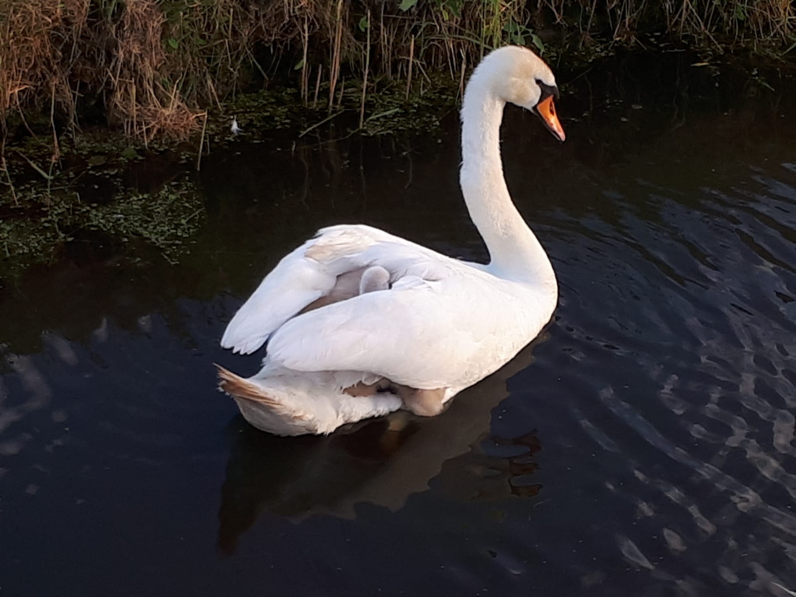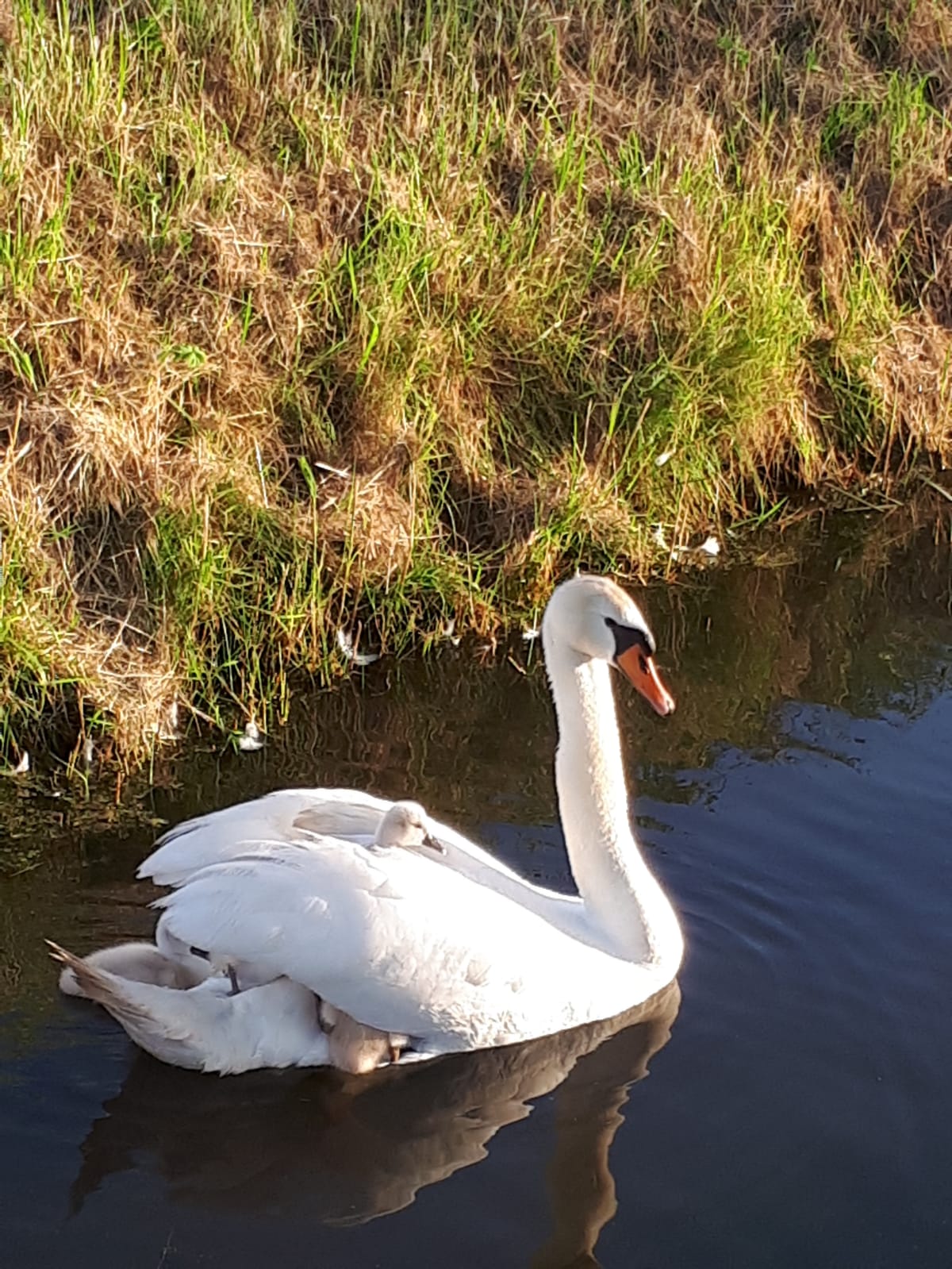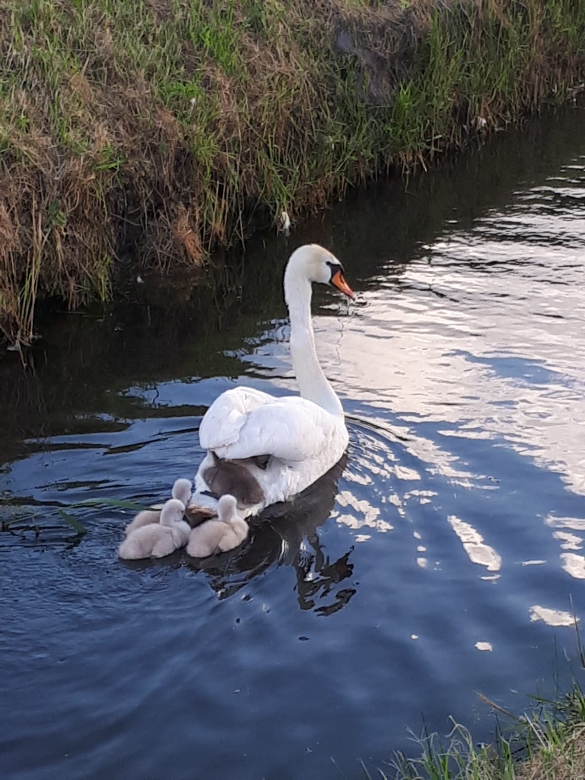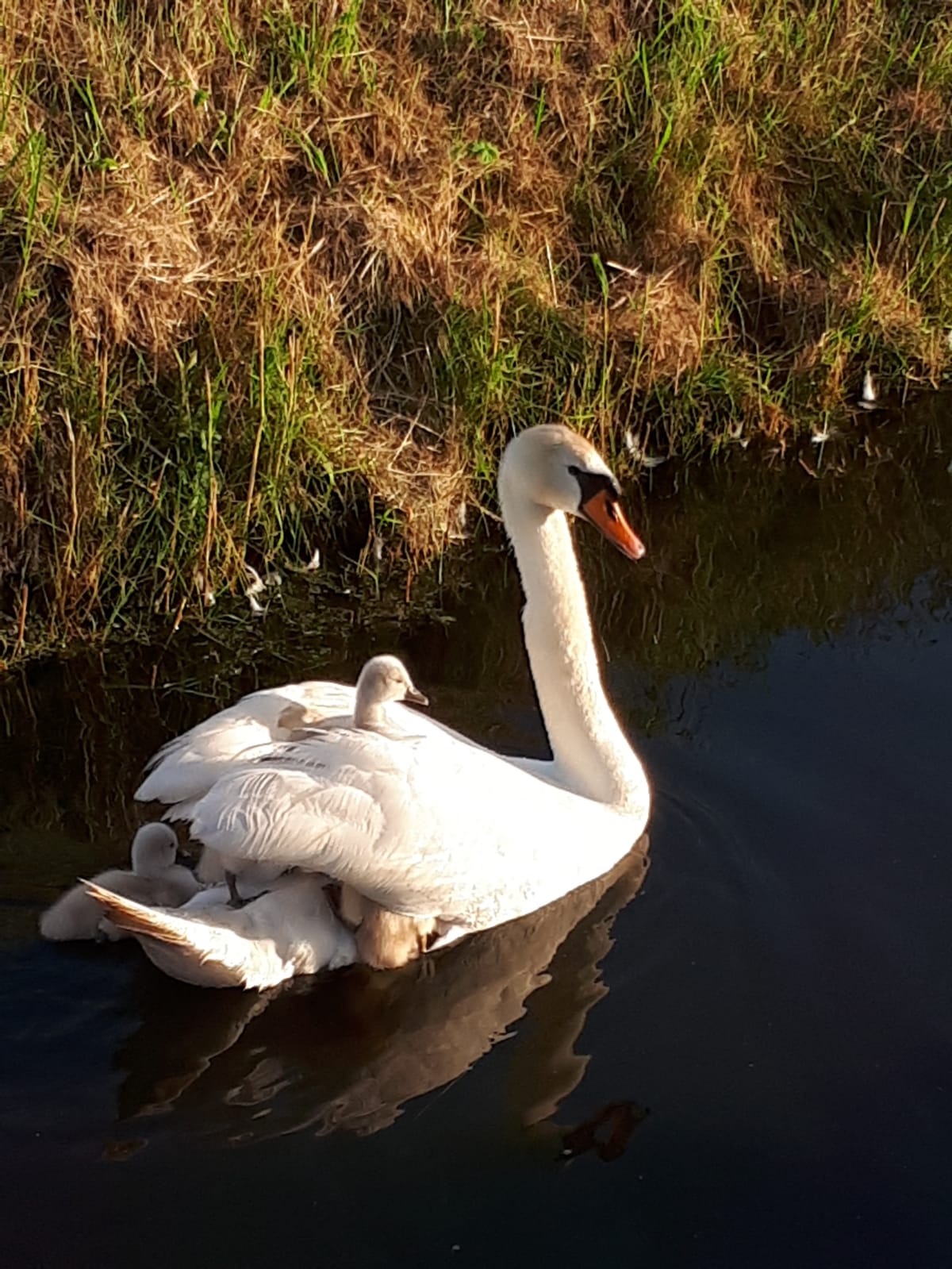 Very beautiful swan. This is looking beautiful with her chicks.