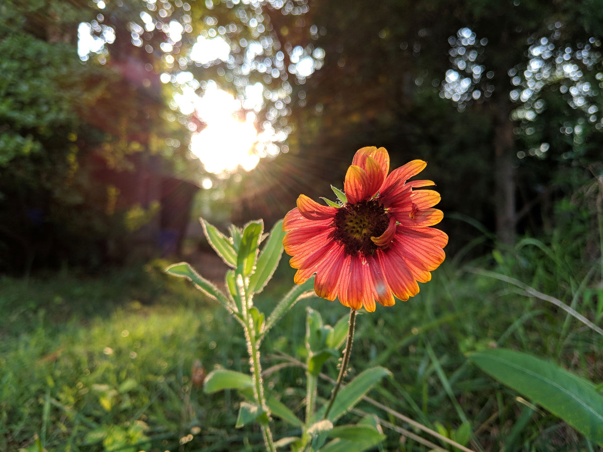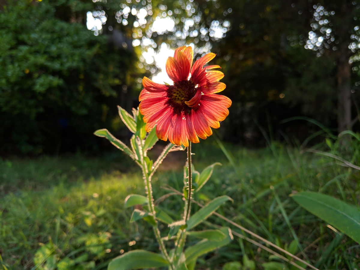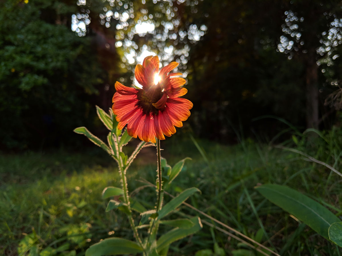 The evening sun was drifting lower in the sky when I noticed that from a certain angle, it was behind this red flower.