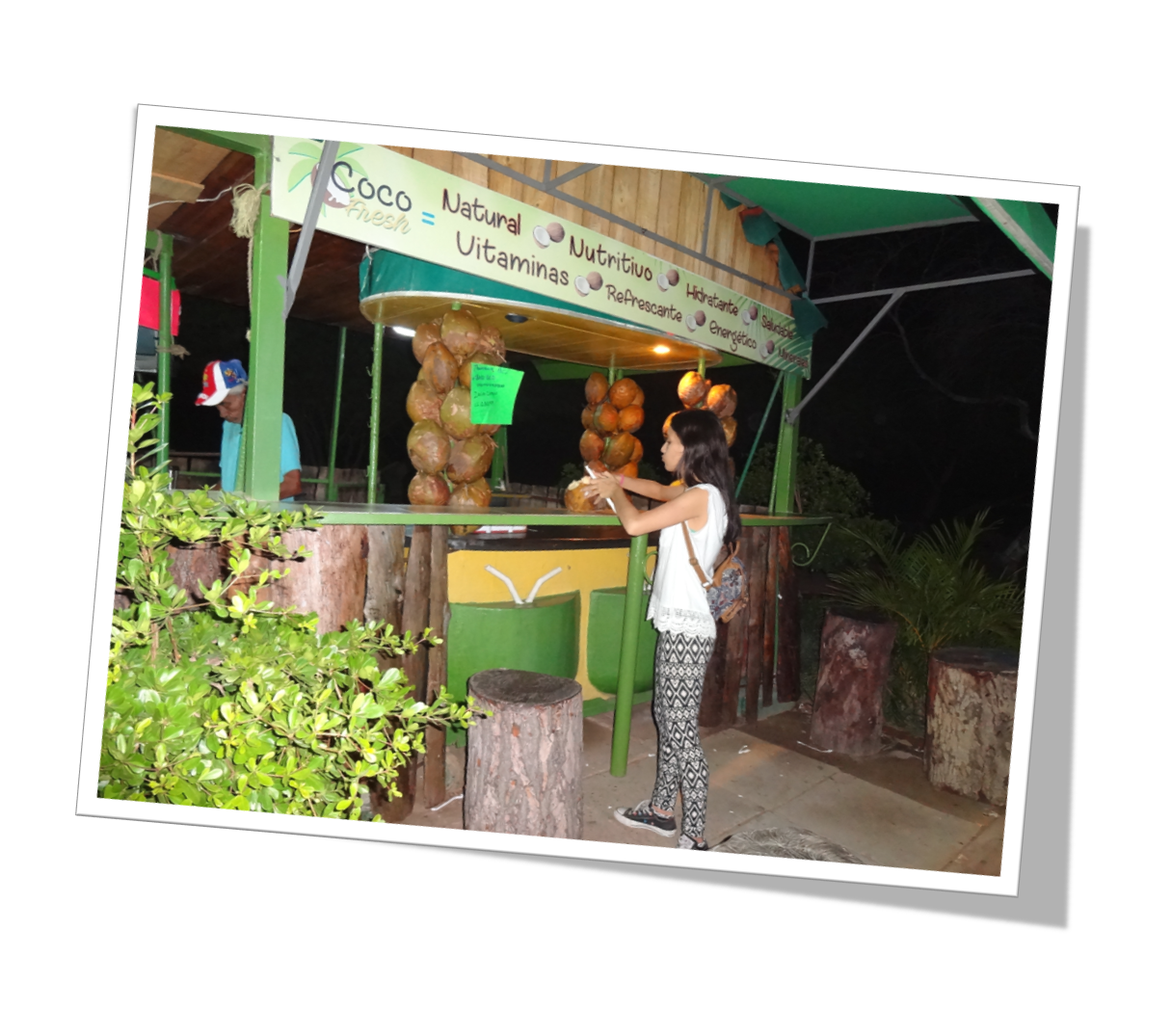 Luego de andar en bicicleta o caminar a la orilla del lago, ya sentía demasiada sed y recurría a la fuente nutritiva y refrescante del agua de coco bien fría. Aquí les muestro varias fotografías del local donde uno puede refrescarse con algo tan nutritivo y todos los beneficios que indica el aviso del local.