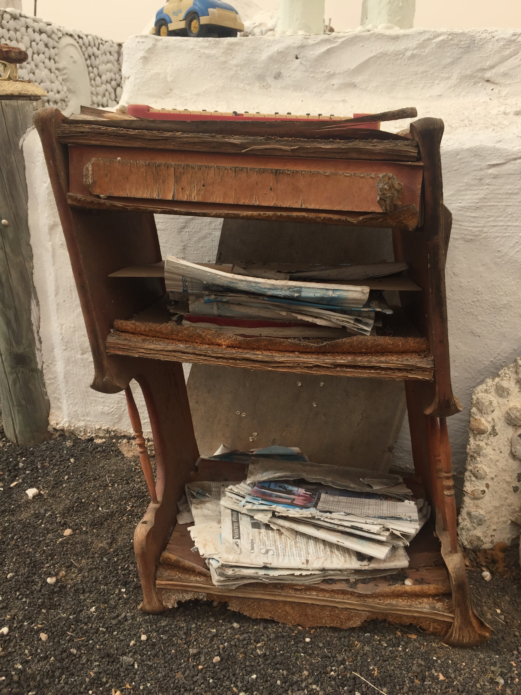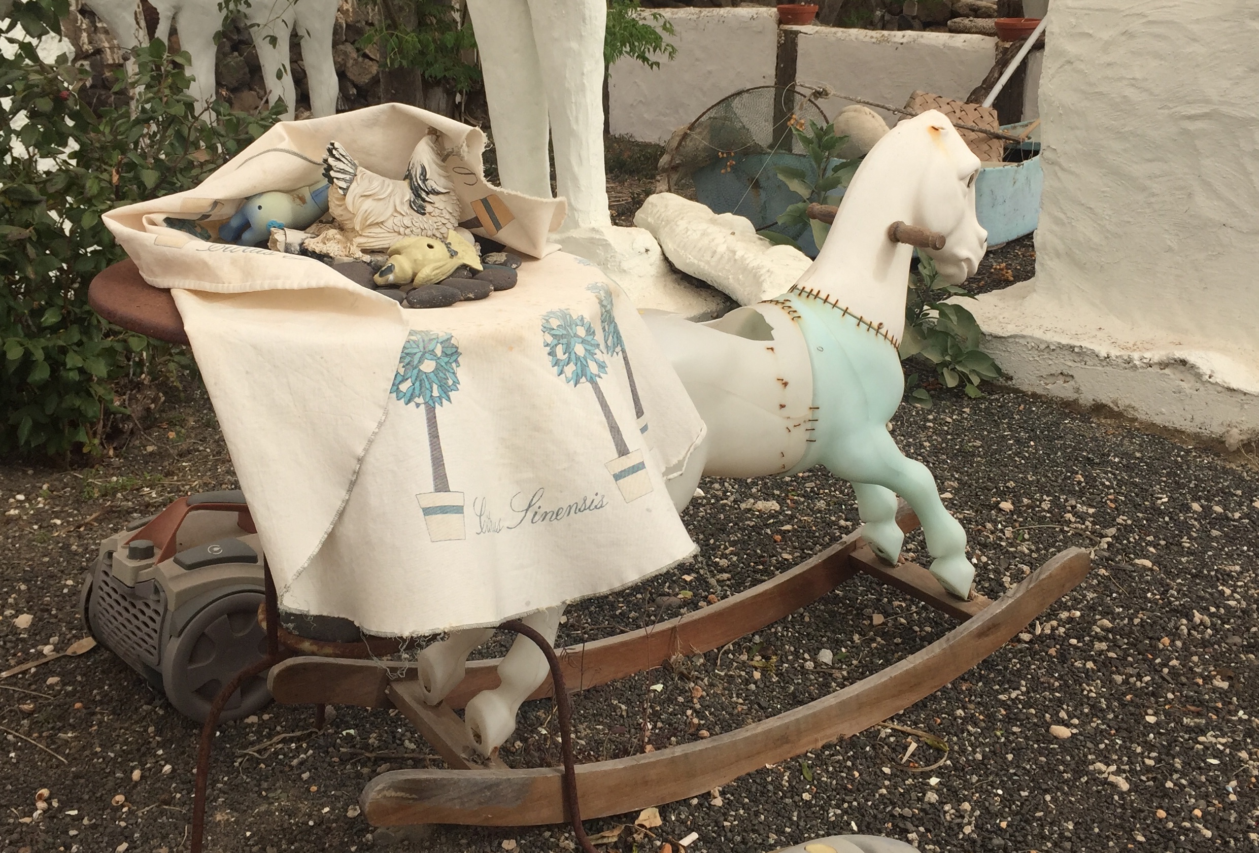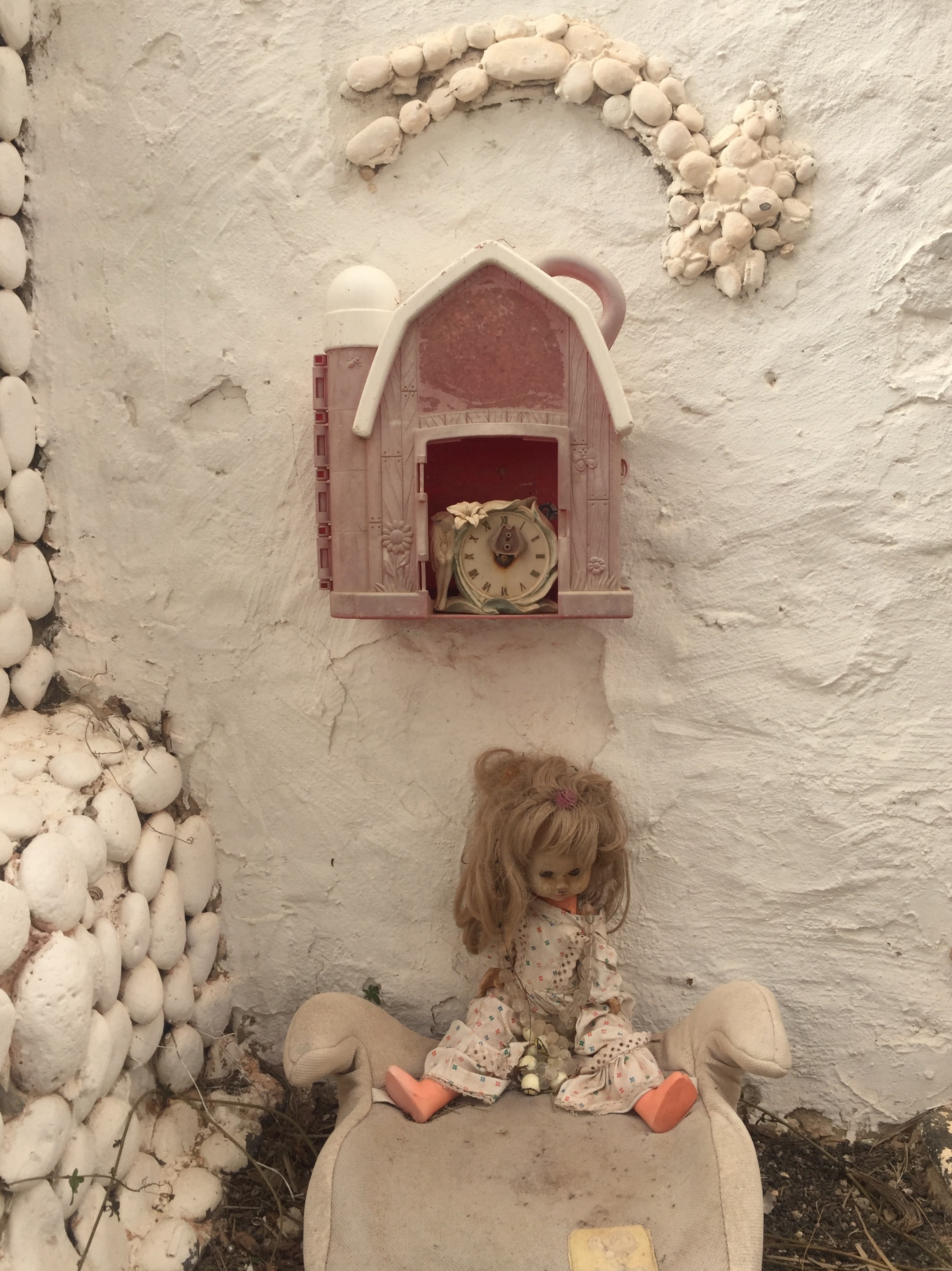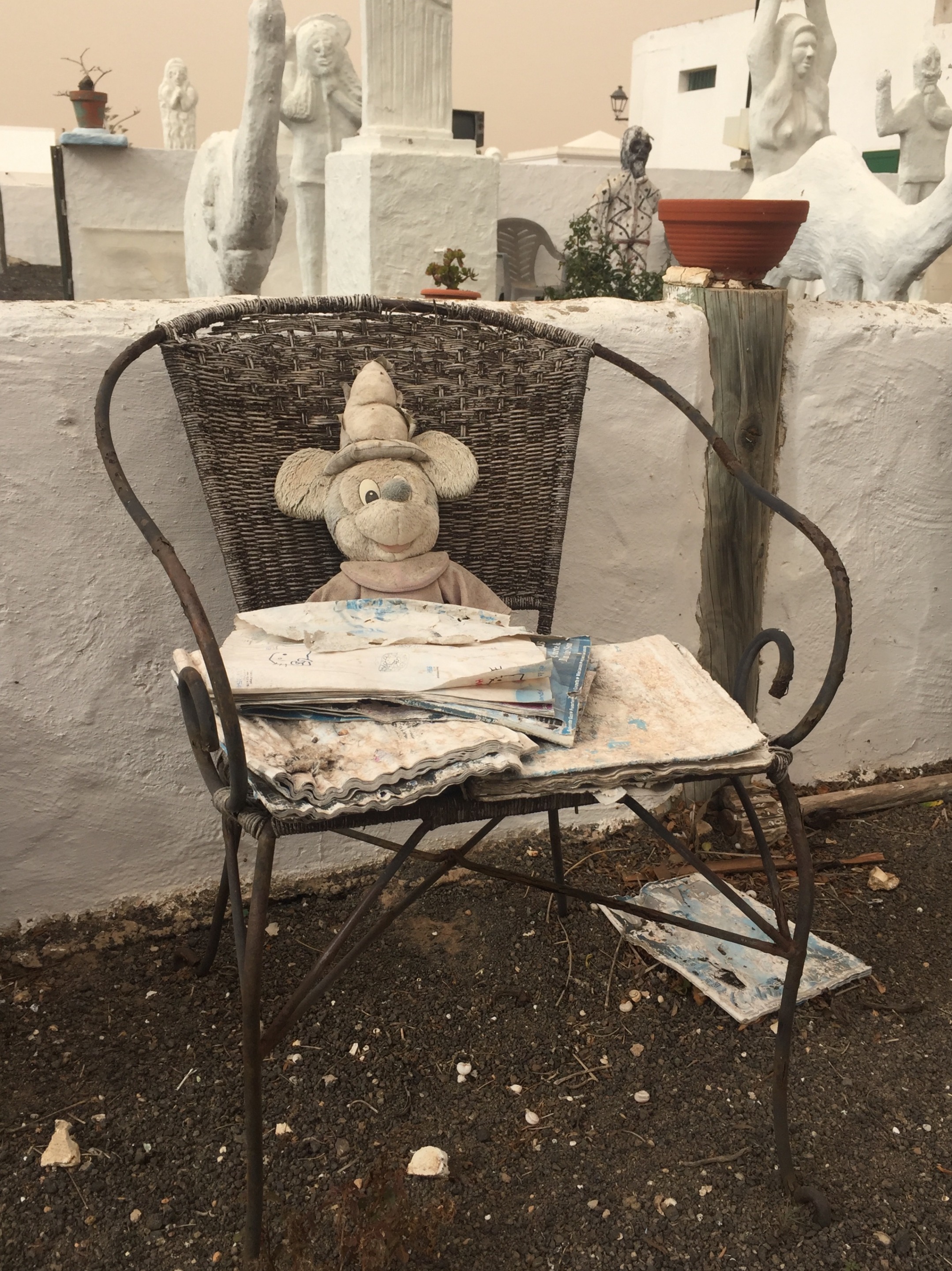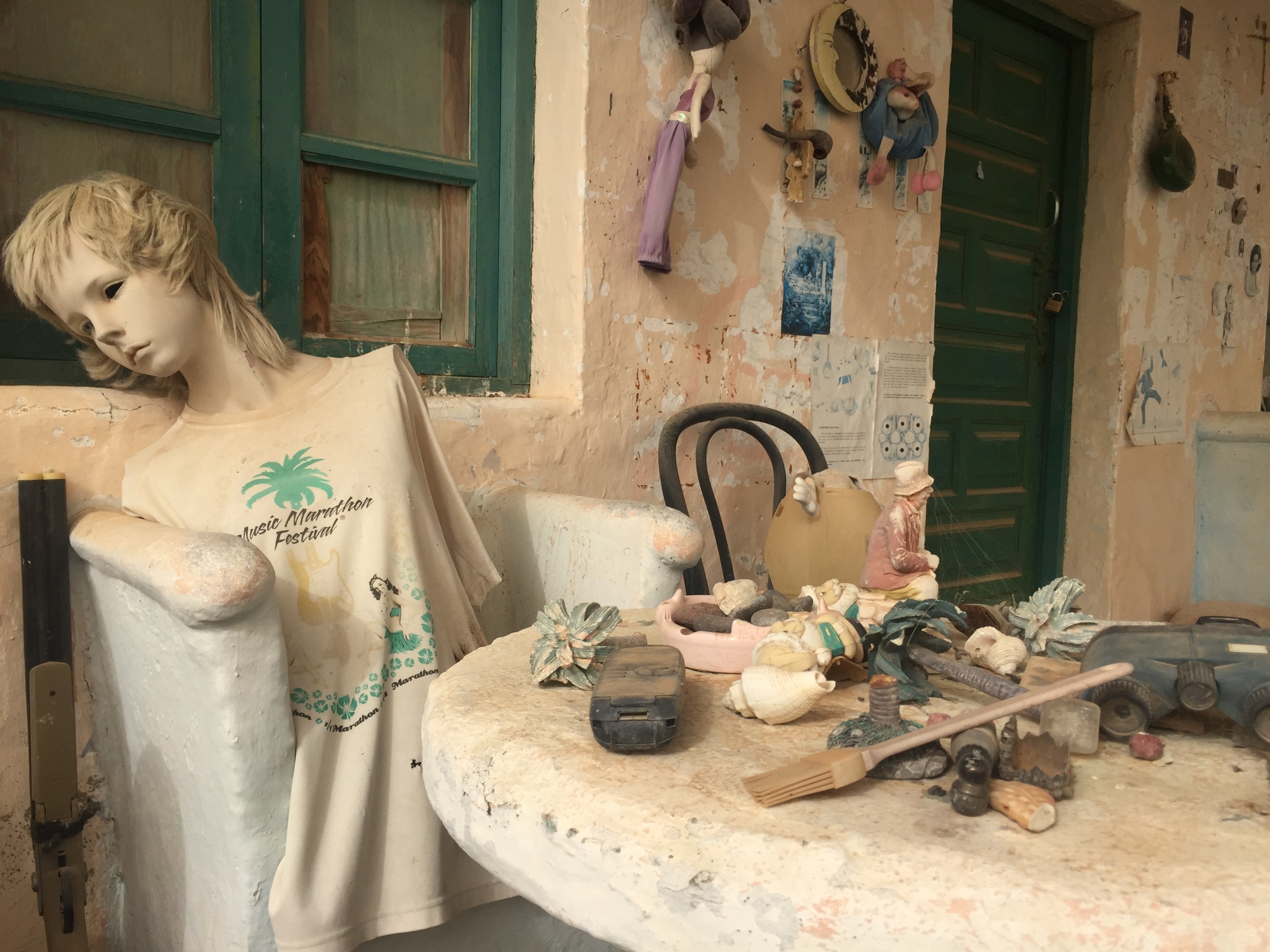 🇪🇸 Acompañan las obras en yeso una colección de juguetes rotos y viejos y otros objectos desechados, en una sublime composición.