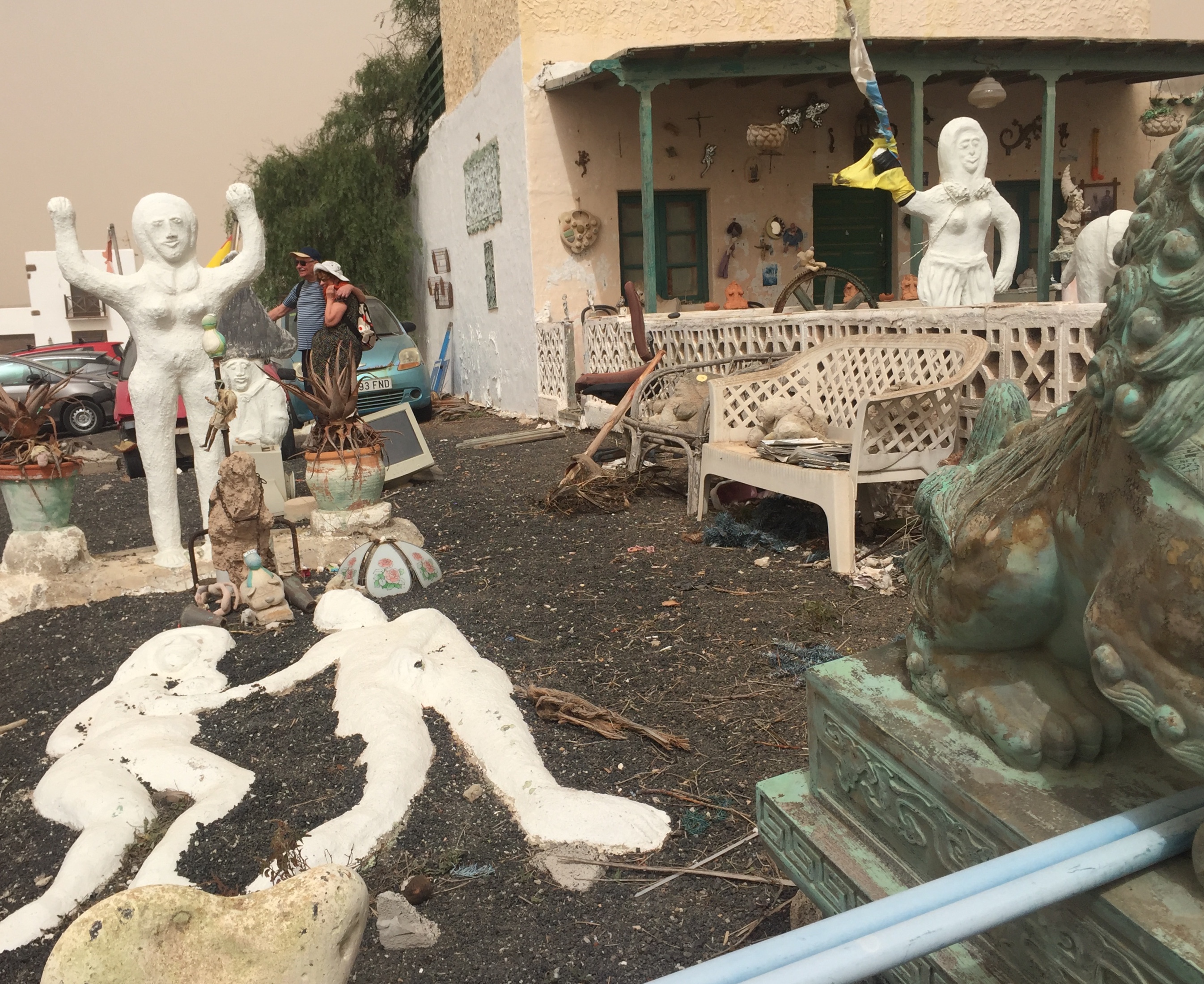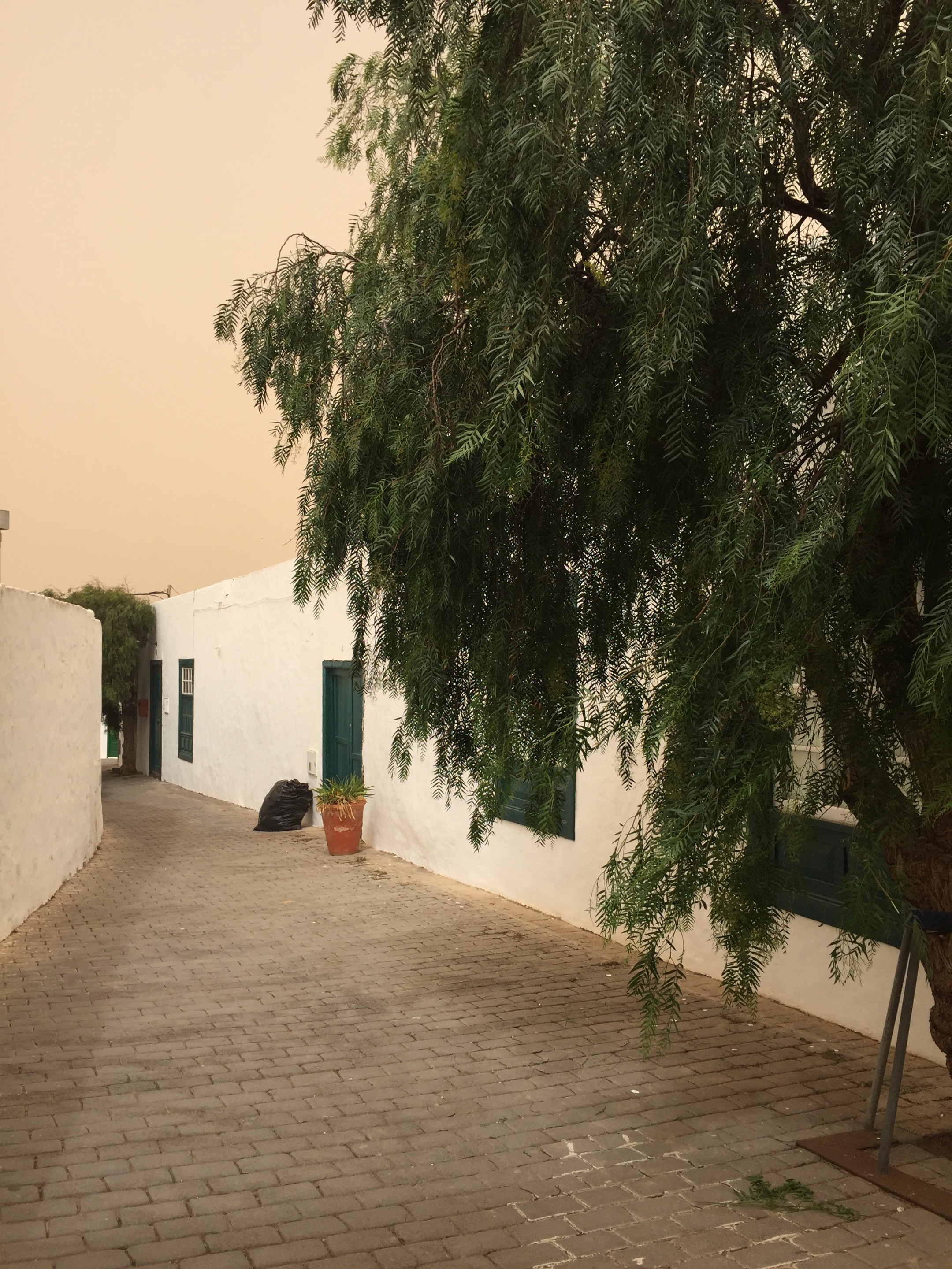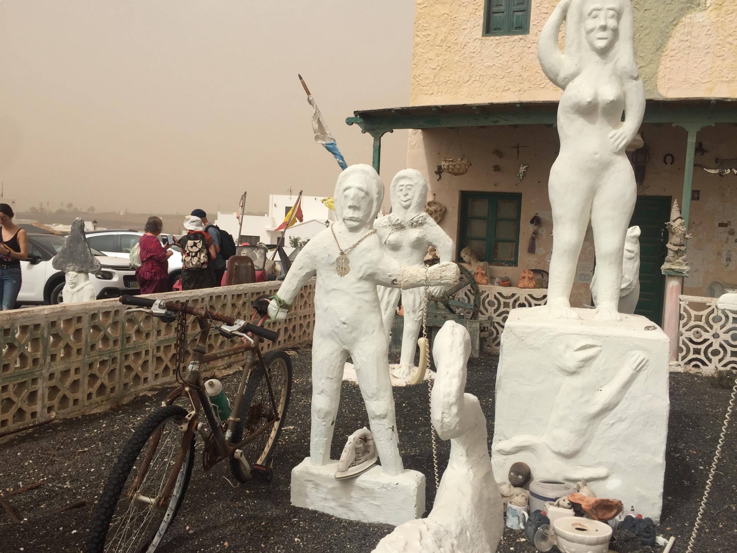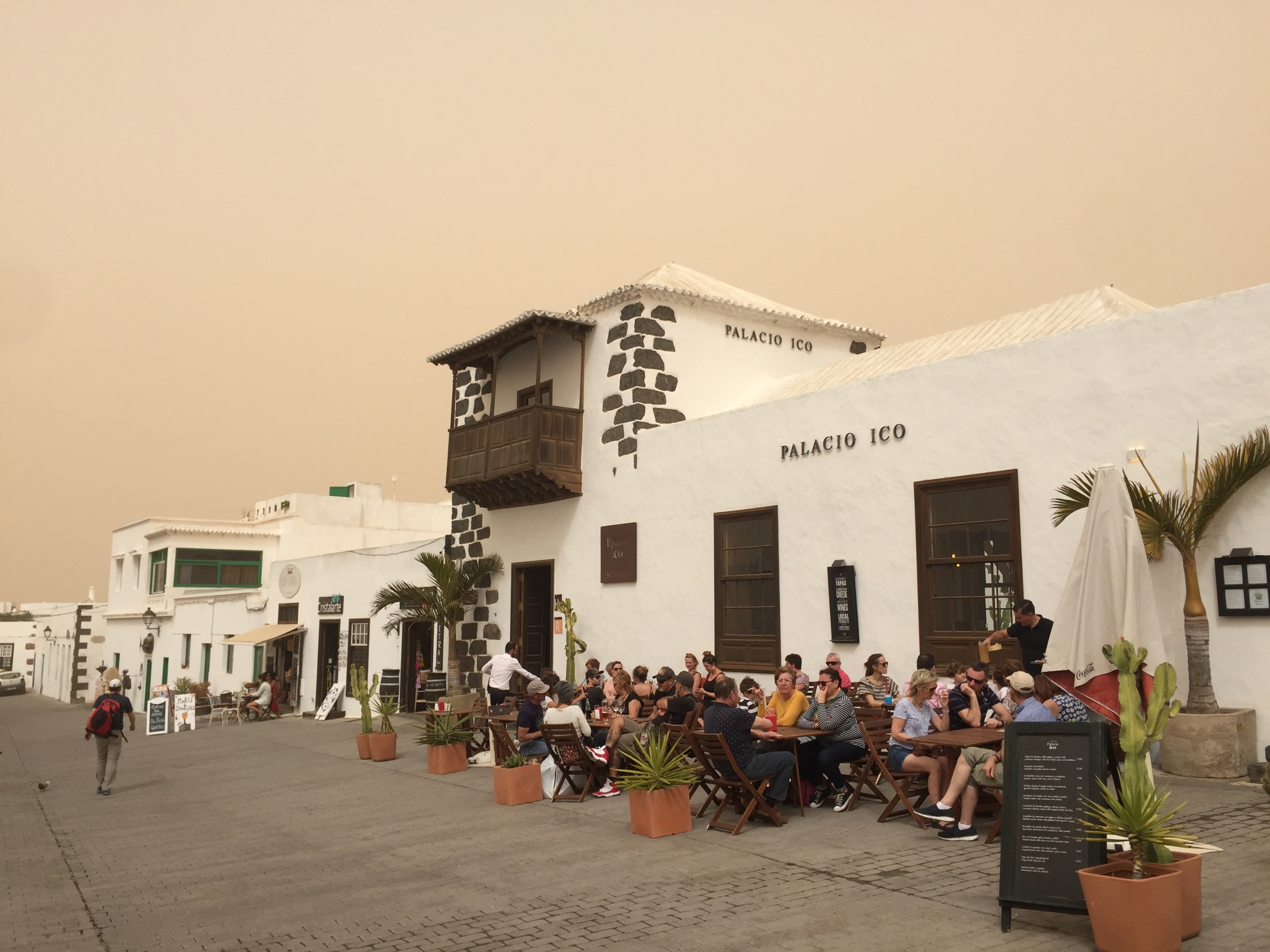 Al llegar nos encontramos con la sorpresa de que el mercadillo se había suspendido por la calima, suele haber más viento que en otras zonas, pero decidimos igual dar un paseo y, por lo visto, no erábamos los únicos temerarios (¿inconscientes?) e ignaros de las noticias locales.