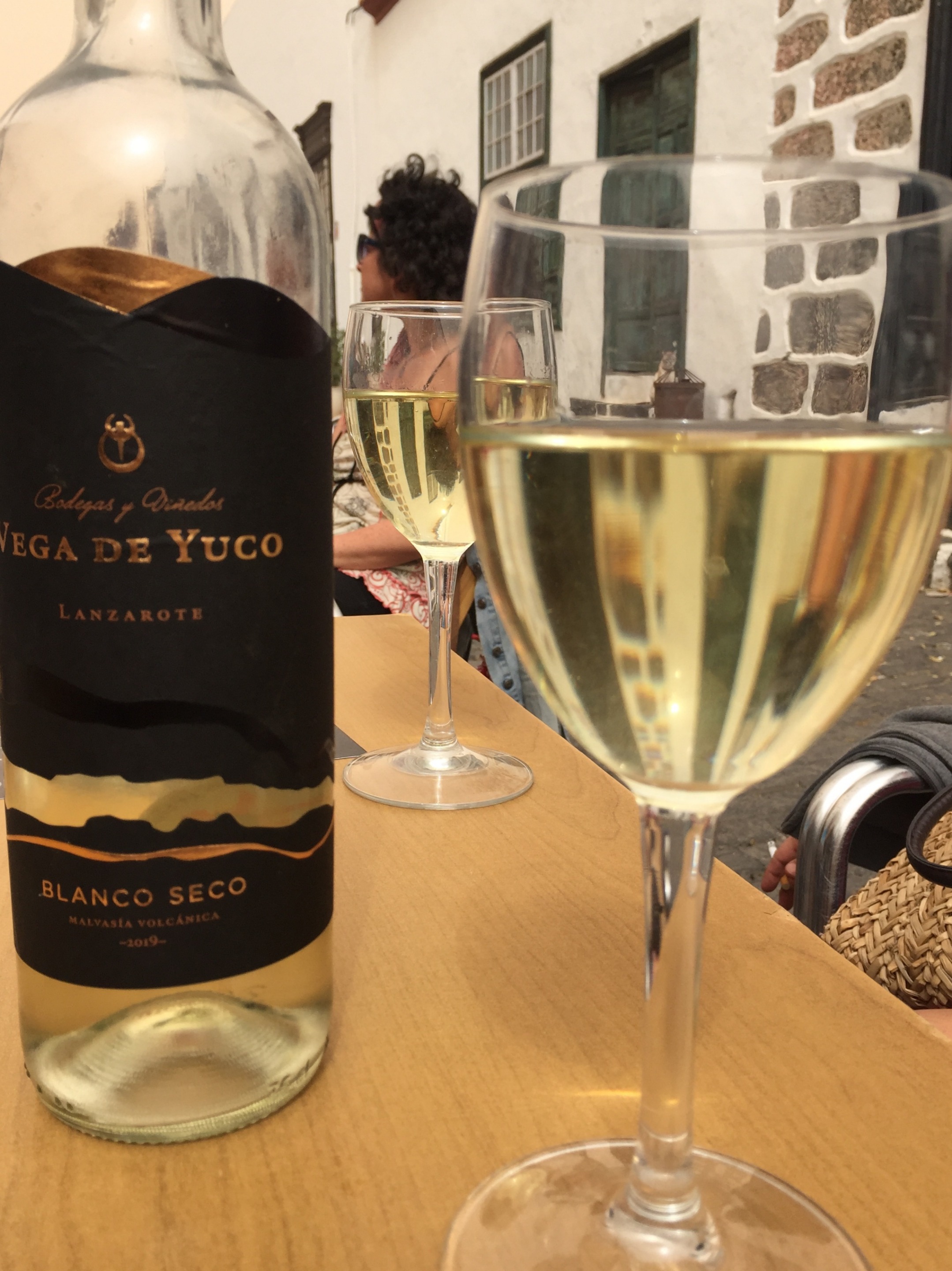 🇪🇸 Pequeño descanso para tomar un vino blanco local de uva malvasía volcánica.