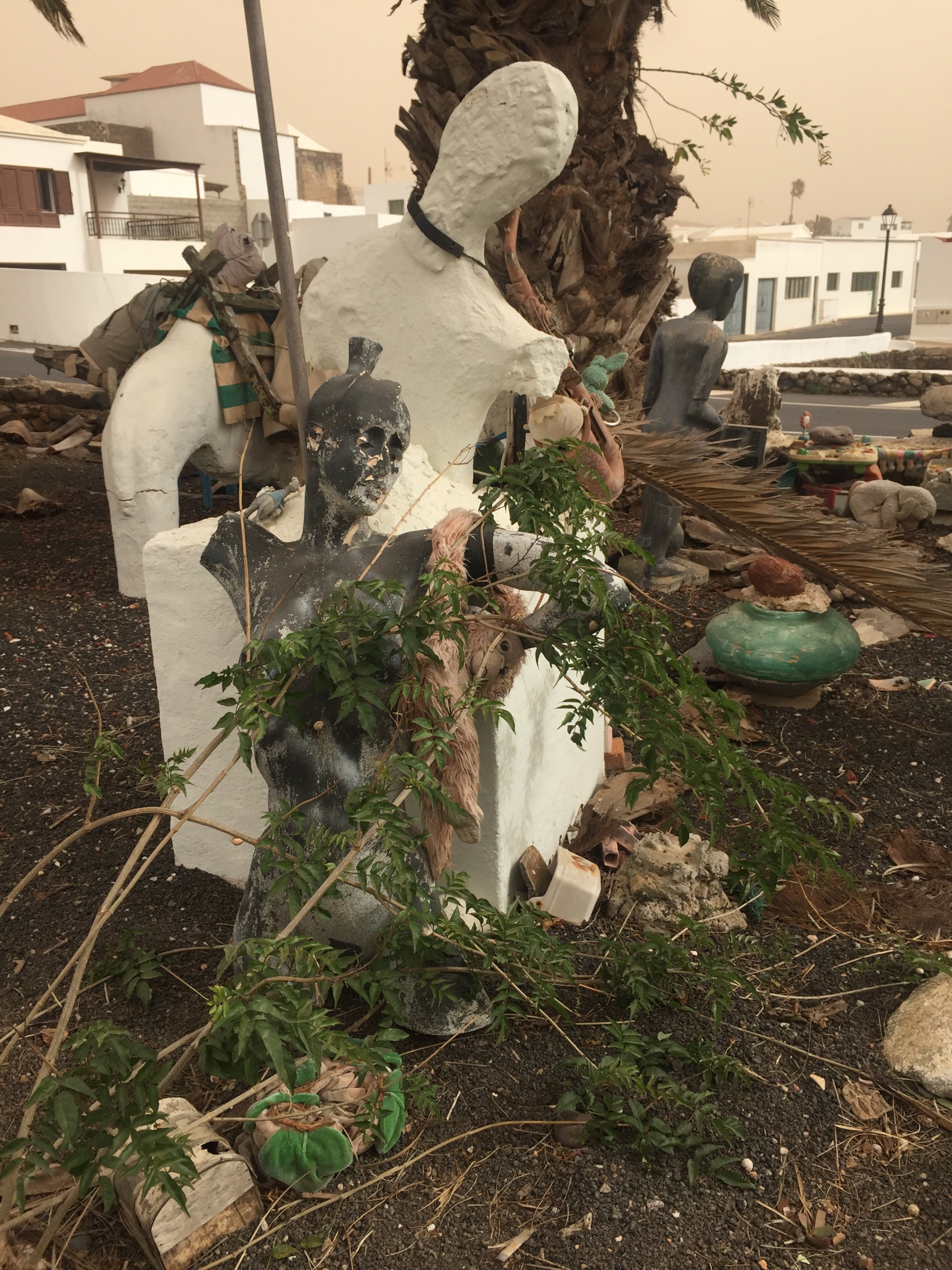 🇪🇸 Llegando a Teguise desde San Bartolomé, a la entrada del pueblo nos encontramos con este peculiar jardín, con sus estatuas que saludan los viandantes.