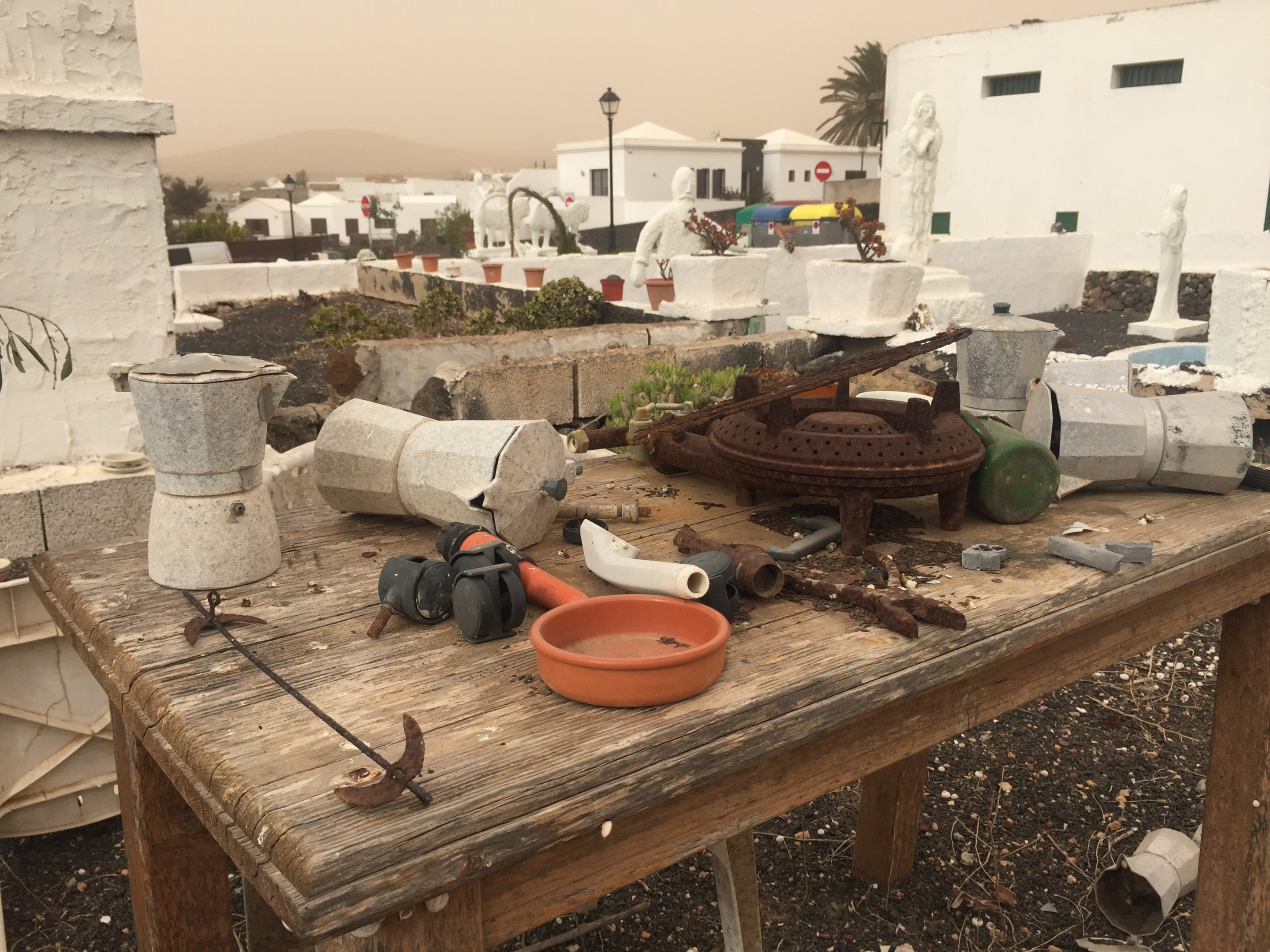 Hoy, con la calima y los volcanes de fondo, este inusual jardín bien podría parecerse a un escenario post apocalíptico.