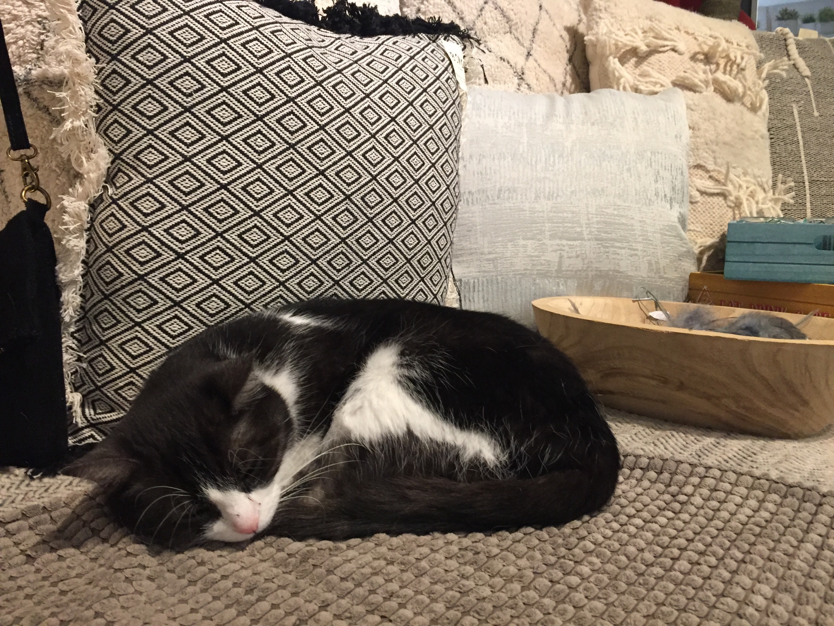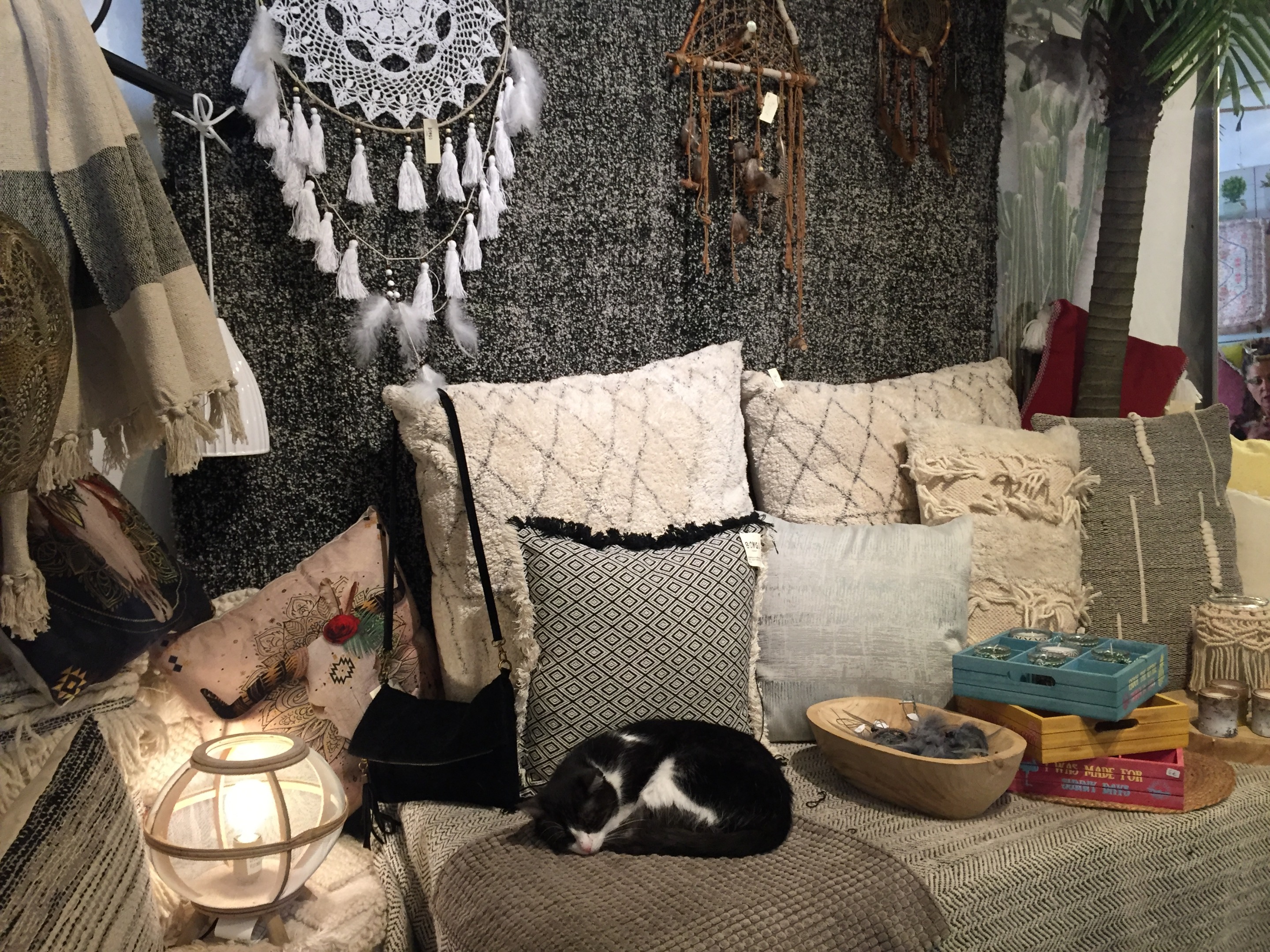 🇪🇸 Este adorable gatito tampoco parece estar sufriendo por la calima, aprovechando para echarse una siesta al resguardo en esta coqueta tienda.