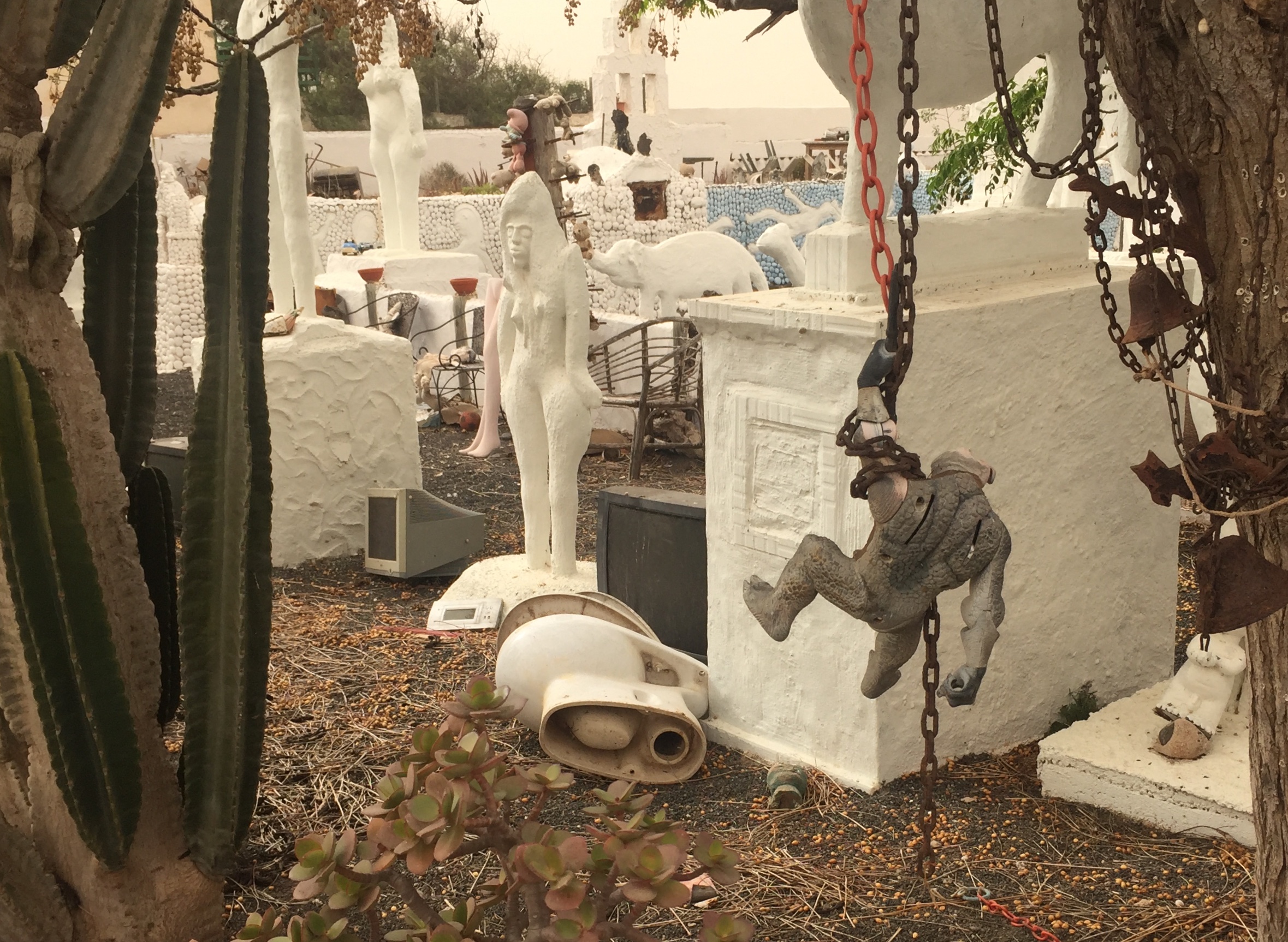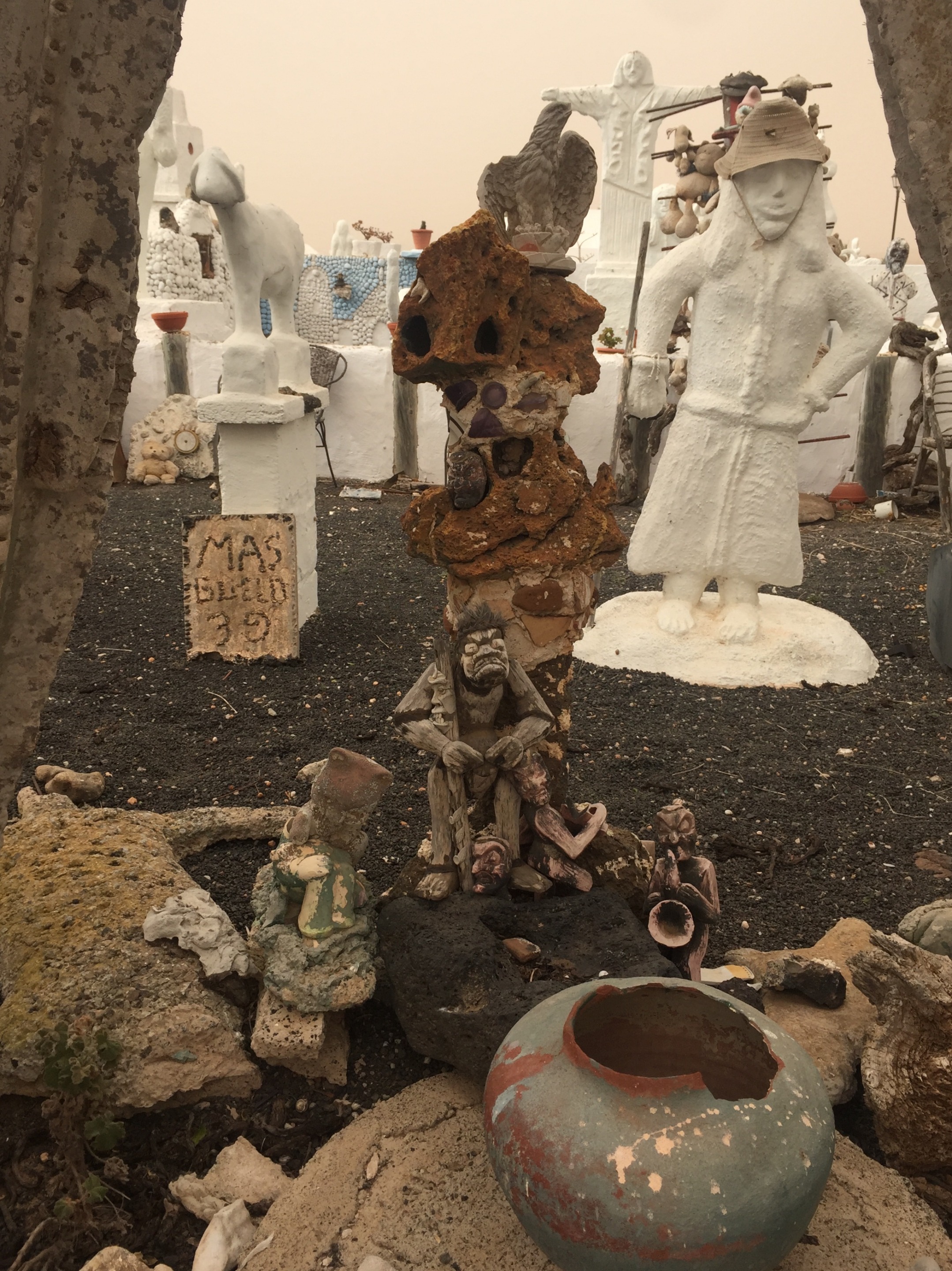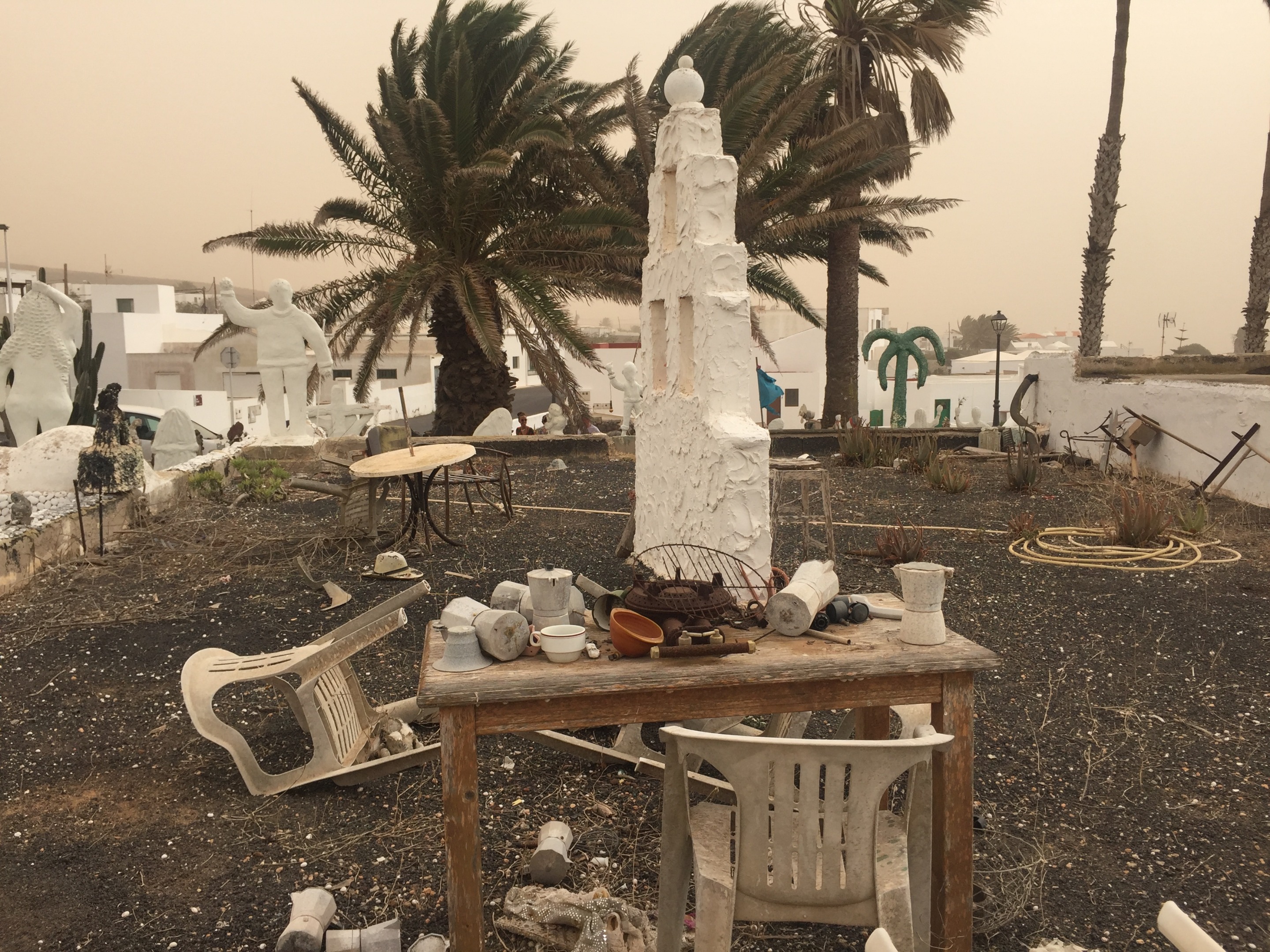 Oggi, con la calima e i vulcani sullo sfondo, questo insolito giardino potrebbe assomigliare a uno scenario post apocalittico.