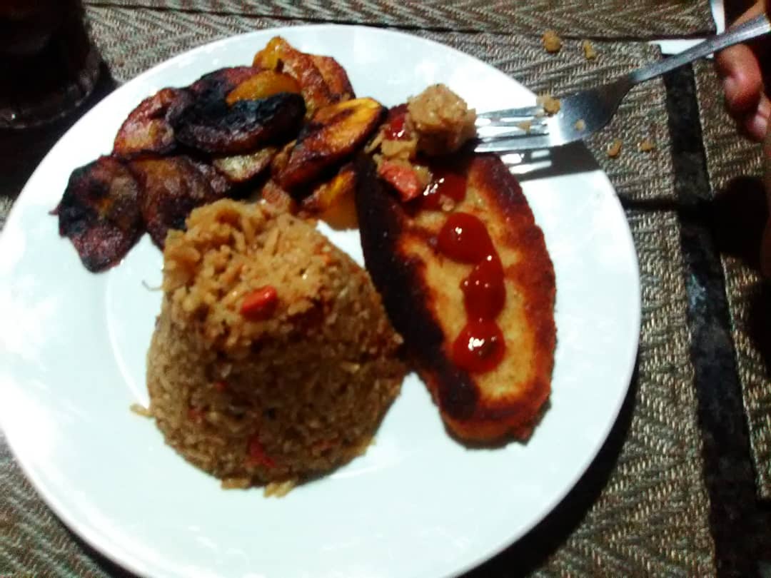This dish content rice with vegetables, chicken milanese and an related specie of banana which we fry(called plรกtanos, suuuuper tasty). December is a rainy month here ๐, it's perfect. And that temperature is horrible for me ๐. OMG.