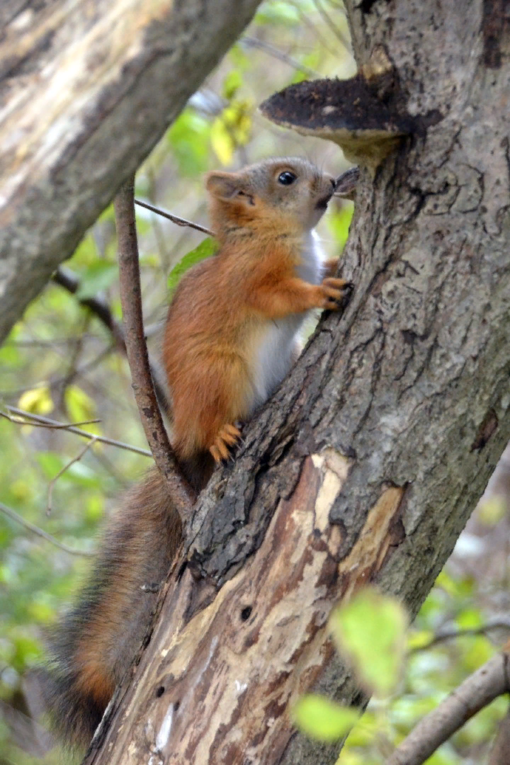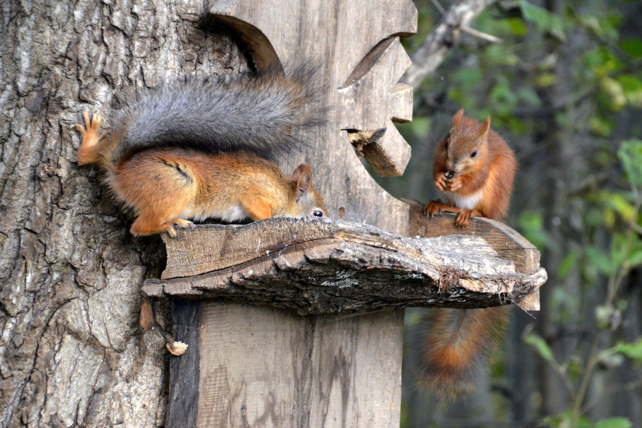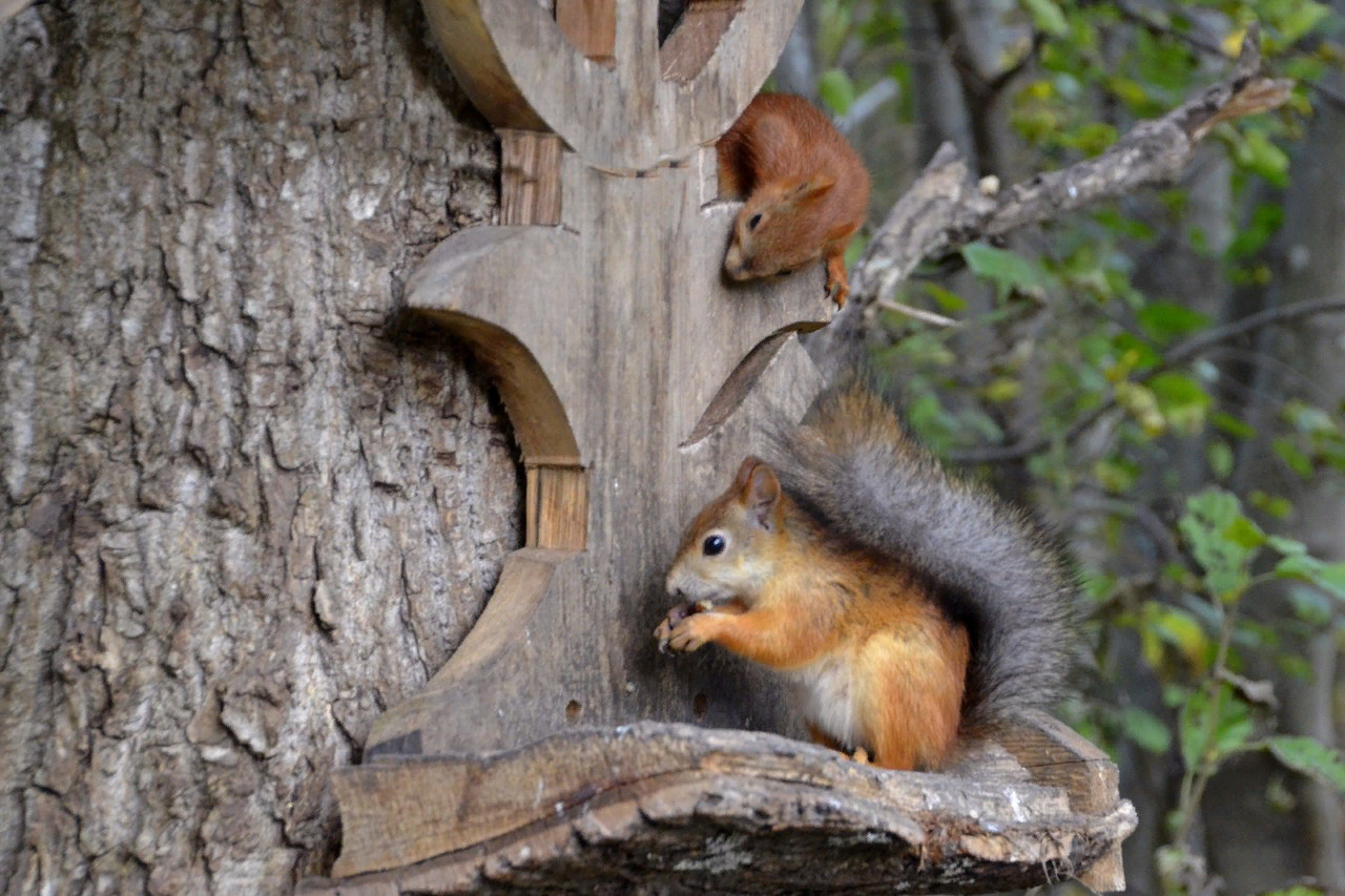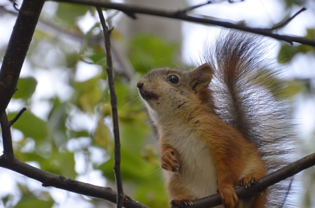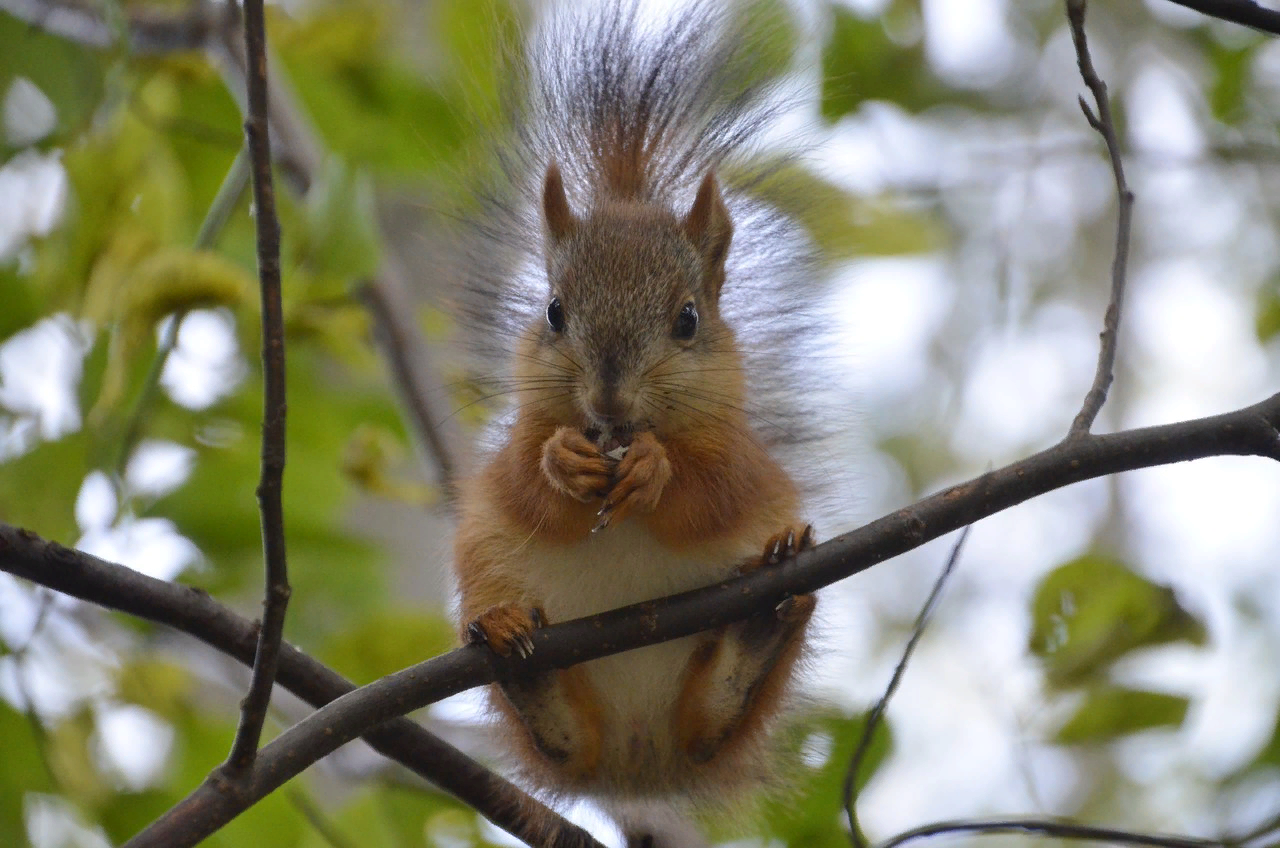 In general, when communicating with this animal, you can't make abrupt movements, twitch your hands, rustle the bag and so on. If you feed it, then be calm... A squirrel fears you more than you fear her).