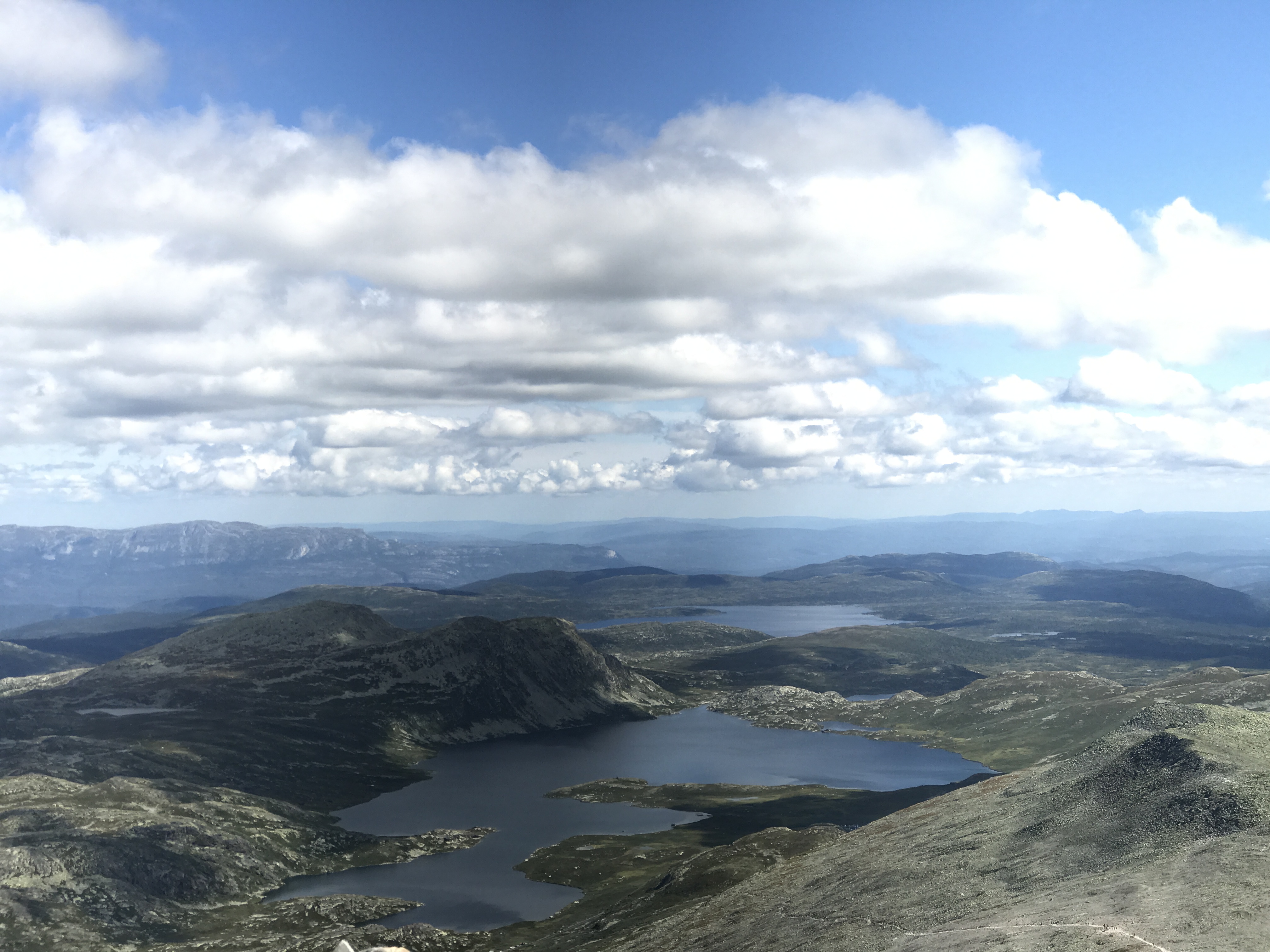 We were lucky that it was a little bit cloudy because it would be very hot otherwise since there was no shade of any kind. At the top (what we thought was the top) it was very windy. The view was fantastic. It seemed as if you could see the whole Norway.