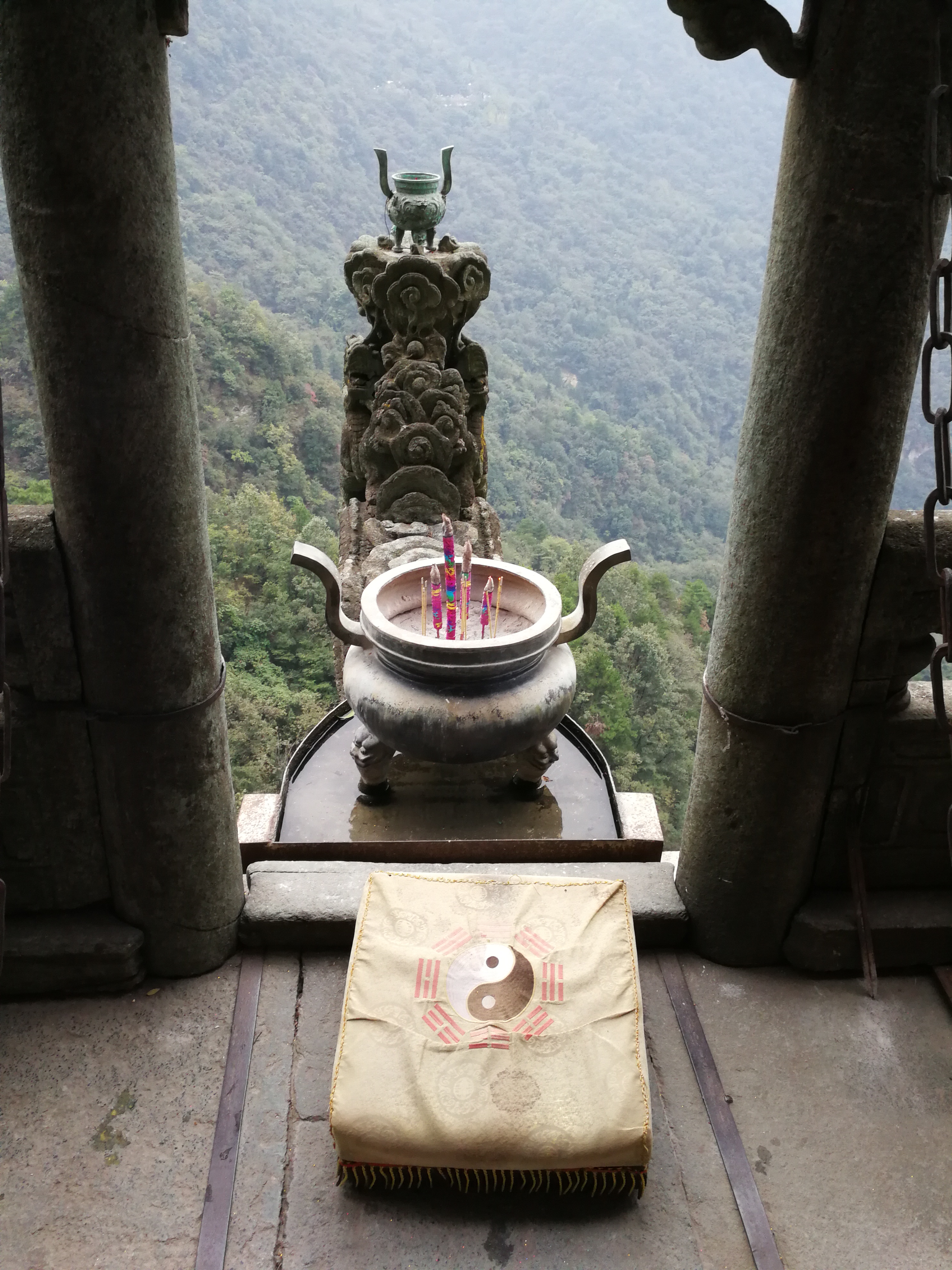 由青石制作而成的这根石梁,横空吐出,下方空空如也,直临深壑,龙头却指向金顶,所谓诚心所向,石梁尽处是一个龙头,上面放着一个小香炉,石梁的宽度也不过40,50公分。