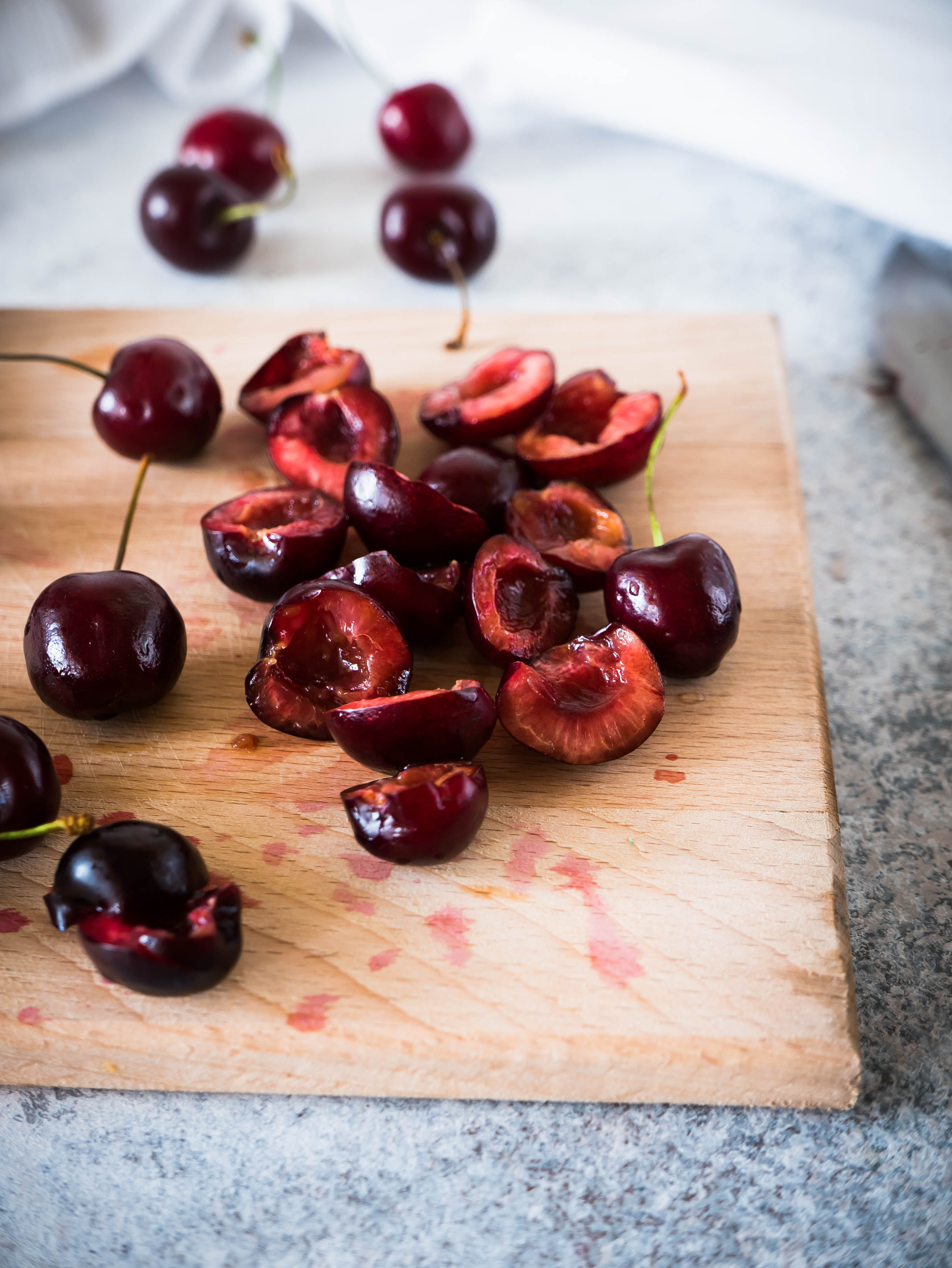 Cherries I cut in half and removed the bones. In this form, the cherry can be added to pastries and you can cook for example deliciously tasty buns with cherries, umm by the way, a great idea for a recipe .. :)