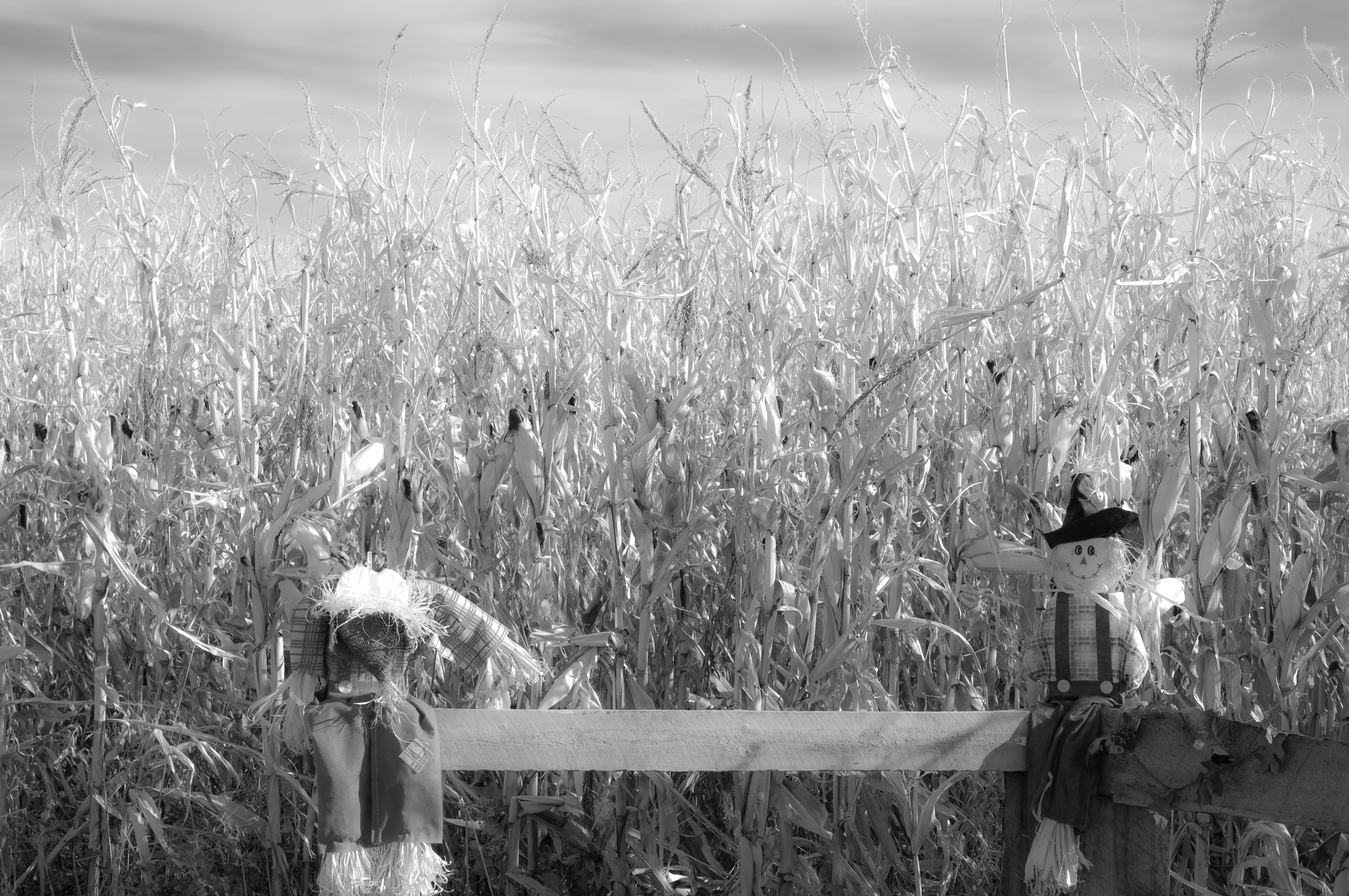 Fall scarecrows in black and whitemmckinneyphoto (48)in #photography • 8 years ago Captured these on a trip to the Corn maze just outside of Calgary. Pair of scarecrows keeping an eye on the maze. #art #photocircle #photofeed #steemit
