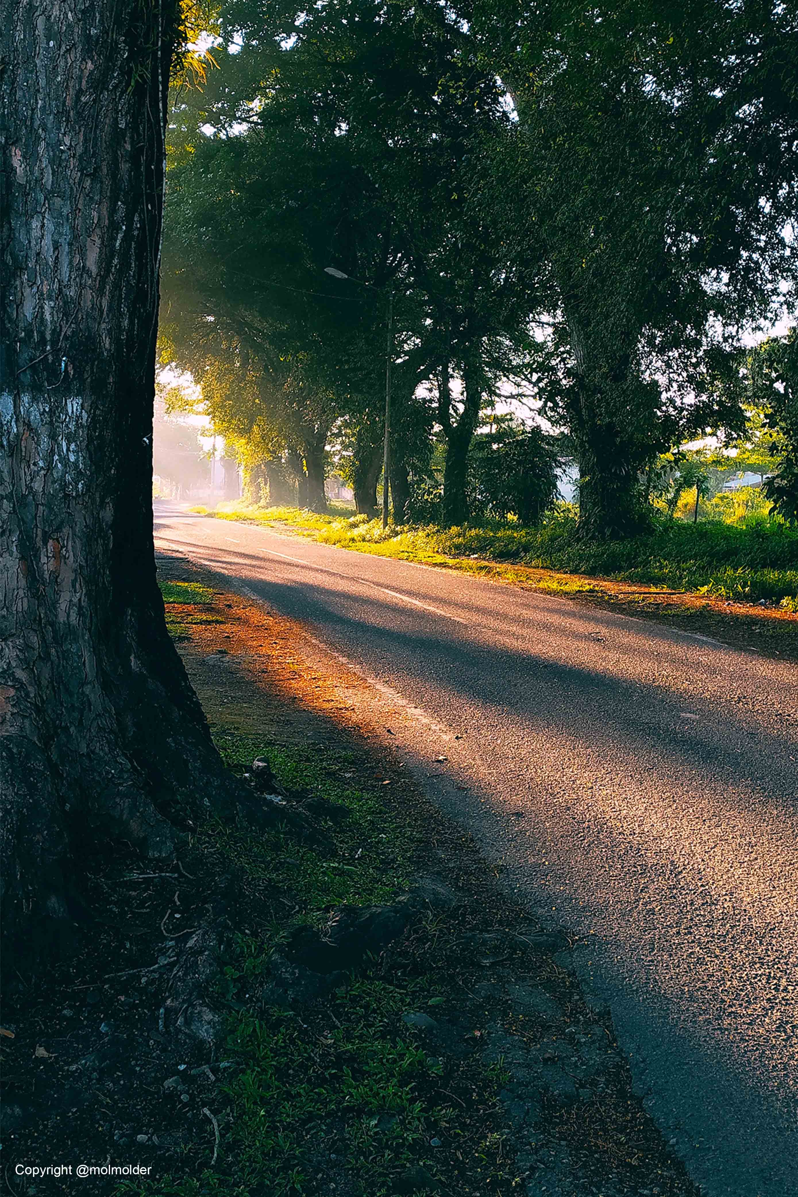 This is a photo of the sunshine in the morning, I took this photo about 3 months ago when I was exercising with my child in my home environment. It was a very sunny morning and the air was very fresh. when I was passing by in the area I accidentally saw this beautiful moment, usually the light is passing through the trees with warm colors and a little reflection of green color I took this photo with my smartphone camera with automatic settings, in the image metadata there is info with the diaphragm f / 1.79 1/497 with ISO125 and 4.74mm wide without flash.