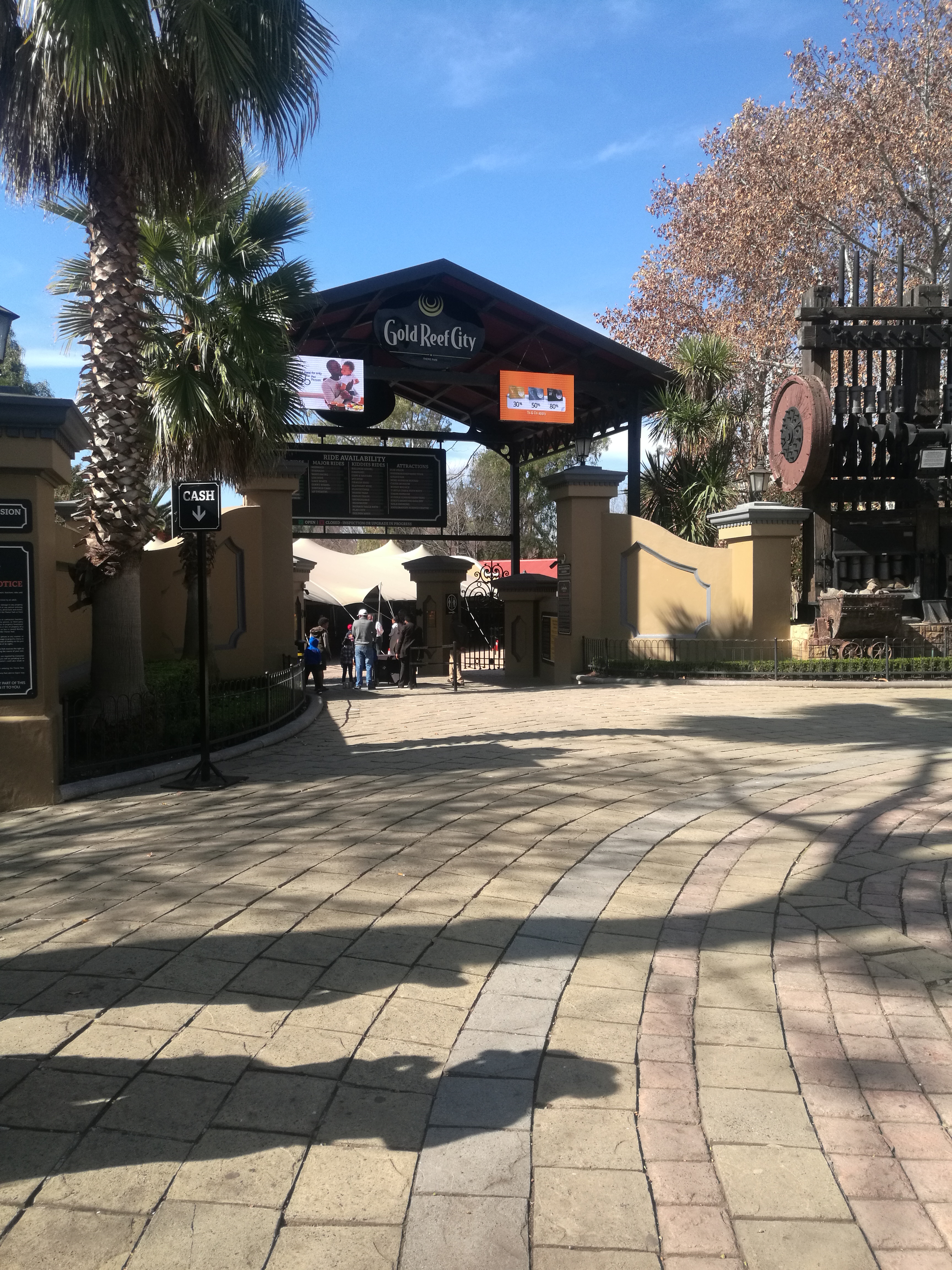 Gold Reef City is a variety of attractions such as the amusement park , apartheid museum , and casino which is located on an old gold mine which shut down in 1971.