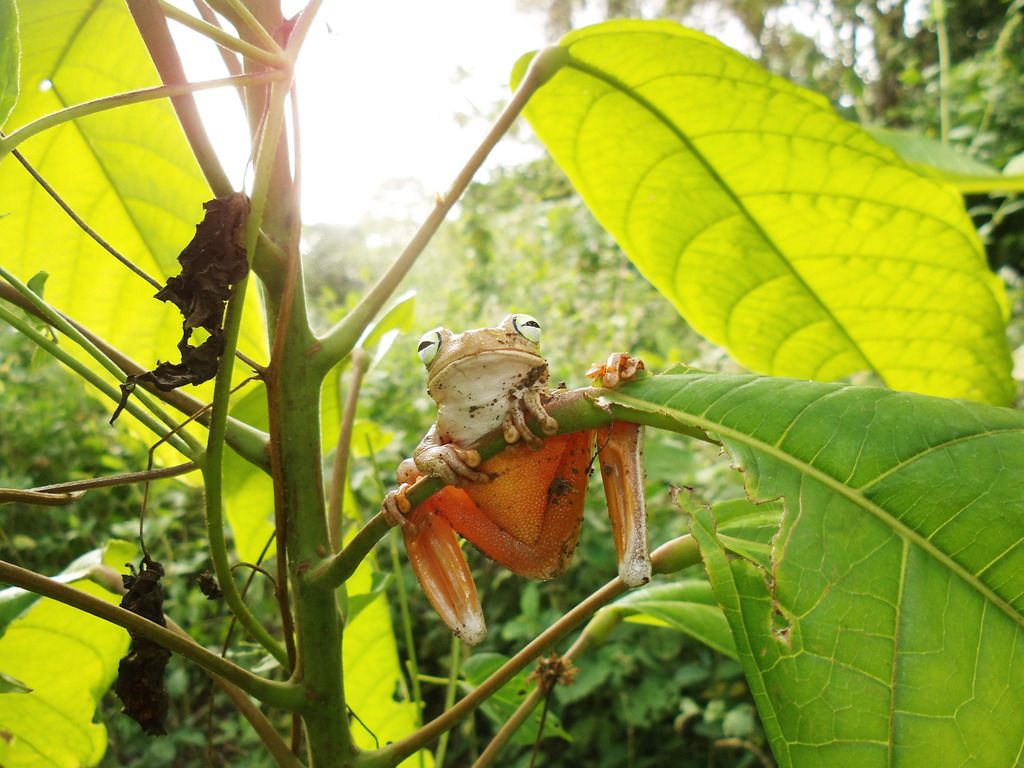 Uno de estos viajes ya en el lugar, mientras caminaba rumbo al conuco, siempre con mi cámara en mano, noté esta hermosura observándome como queriendo hablarme, no sé que me estaría diciendo pero no dude en cuadrarme y dispararle mi primera captura a una distancia considerable para que no saltara ni se asustara, pero noté que no tenía miedo, muy valiente ella, al contrario, sentía una especie de atracción, como que me llamaba, como que me decía ella a mi "no tengas miedo". Ocurrió la magia, me acerqué lo más que pude, y esta bella rana no se movía ni dejaba de mirarme, y le tomé otra captura, increíblemente se acomodó como buscando su mejor pose, en ese momento reí, y le agradecí por tan grande honor. Me brindó varias poses excelentes, "ranita eres toda una modelo", elegí estas dos fotos que me encantan.