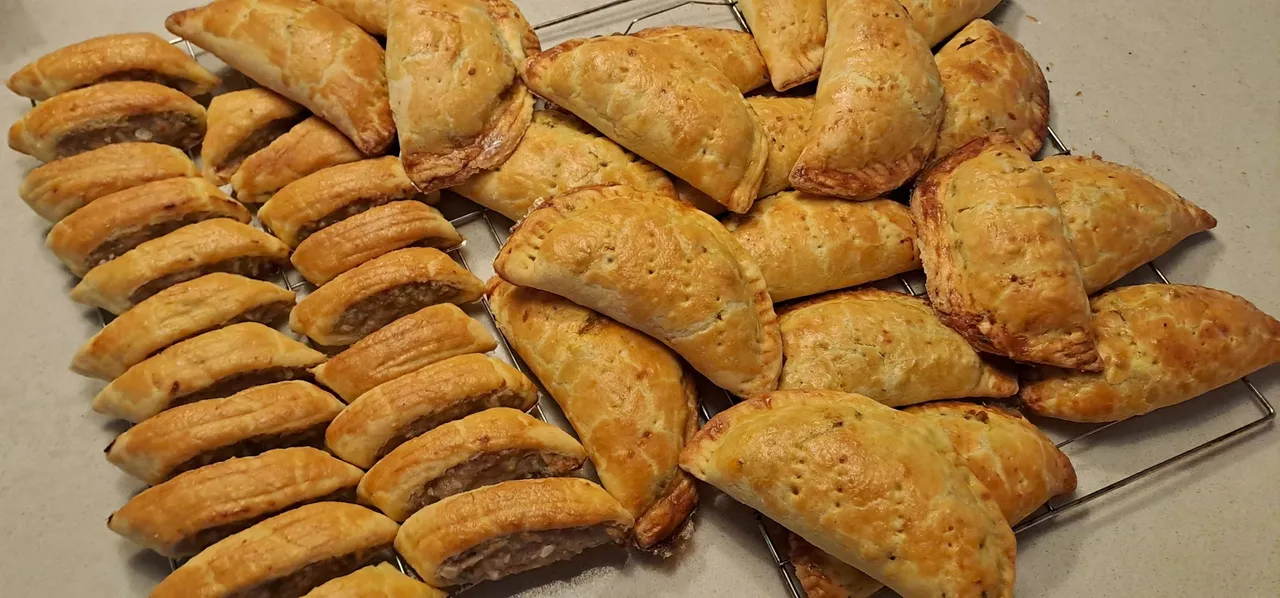 Meanwhile, my sister-in-law and I are having fun in the kitchen, so we had a big bake-off last week. We made spicy ground beef pies, sausage rolls, and jam tarts with the leftover homemade flaky pastry. We made enough to share with her family, and still have enough in the freezer to take out for a couple of quick meals. The pies are lovely served with creamy mashed potatoes and vegetables, or with chips and a salad