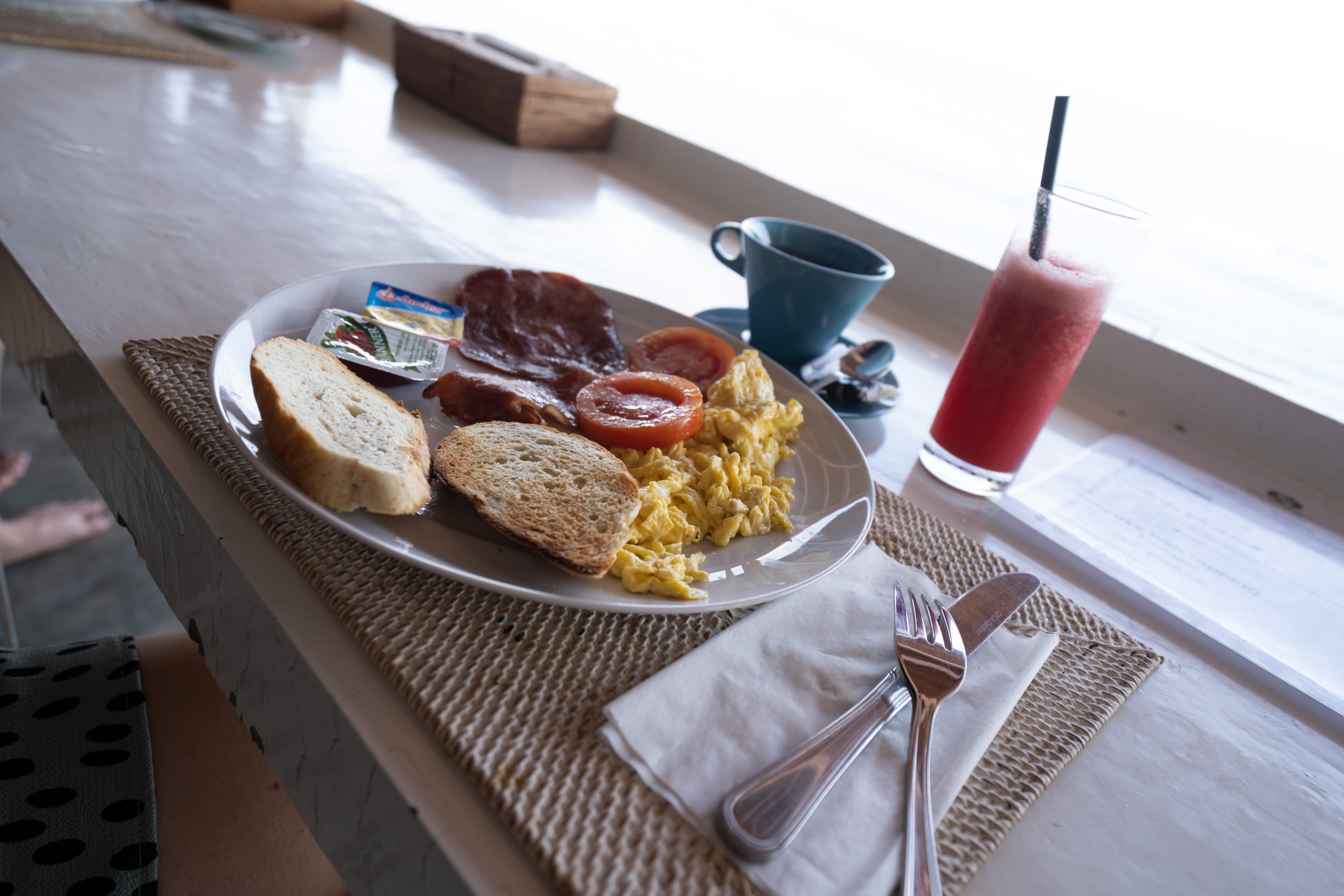 Die ersten 2 Nächte verbachten wir im Hotel Cliff House. Dieses liegt direkt an der Küste von Kuta mit einem tollen Ausblick morgens beim Frühstück!