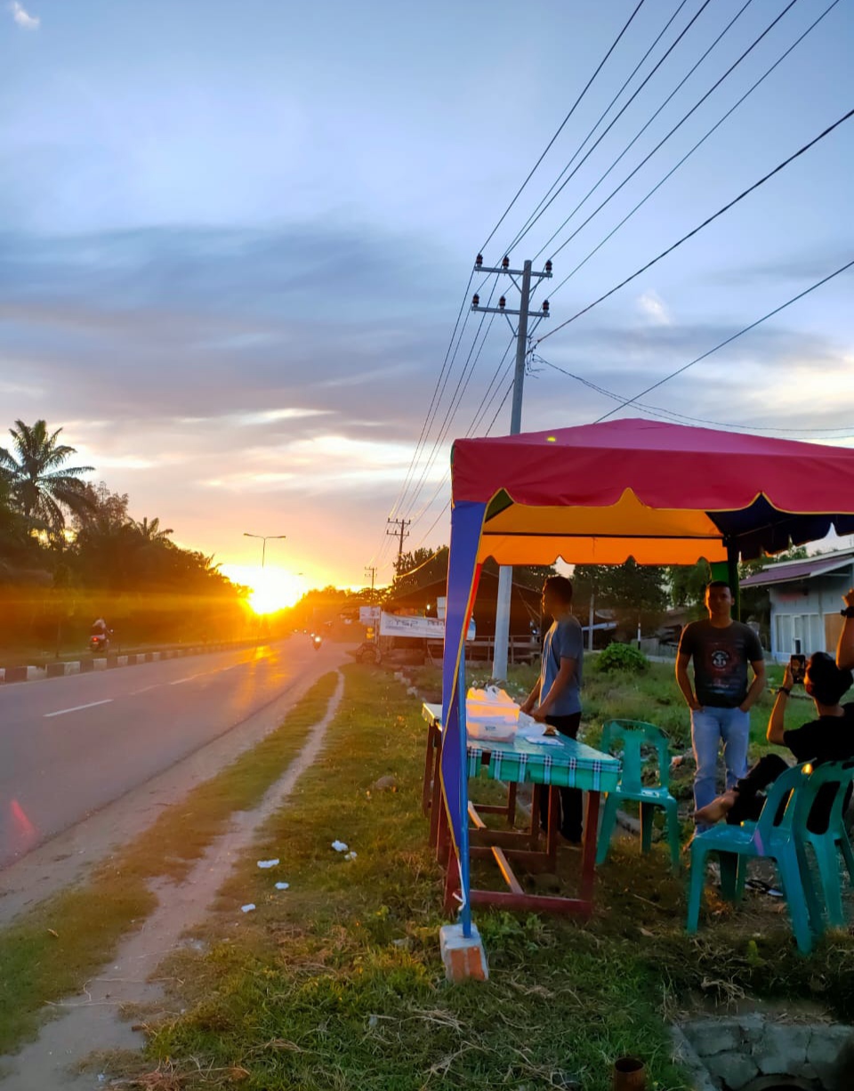 sore ini saya sedang membeli bukaan saya melihat indahnya sinar mentari yang sedang terbenam.