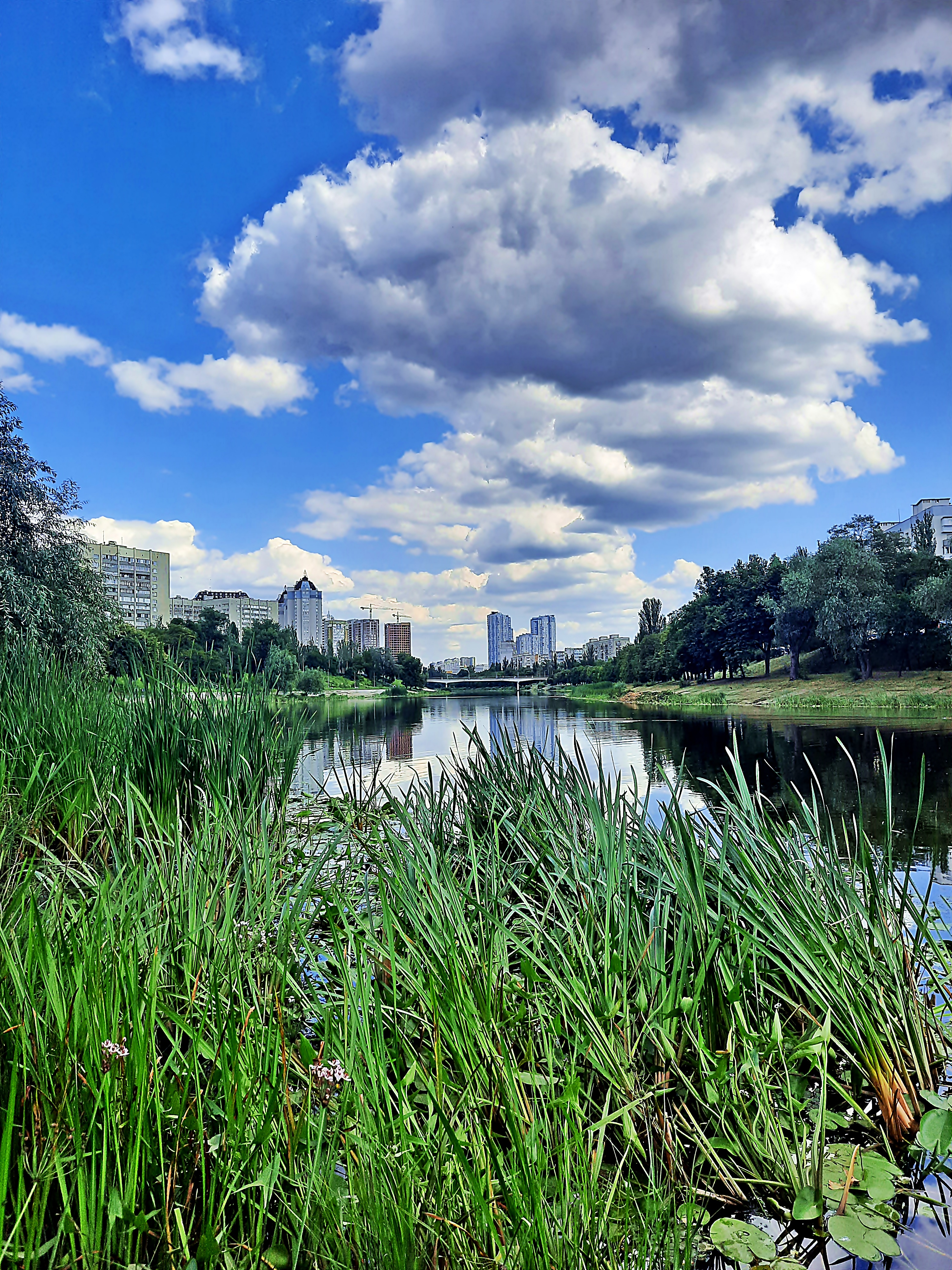Morning river channel. Kyiv
