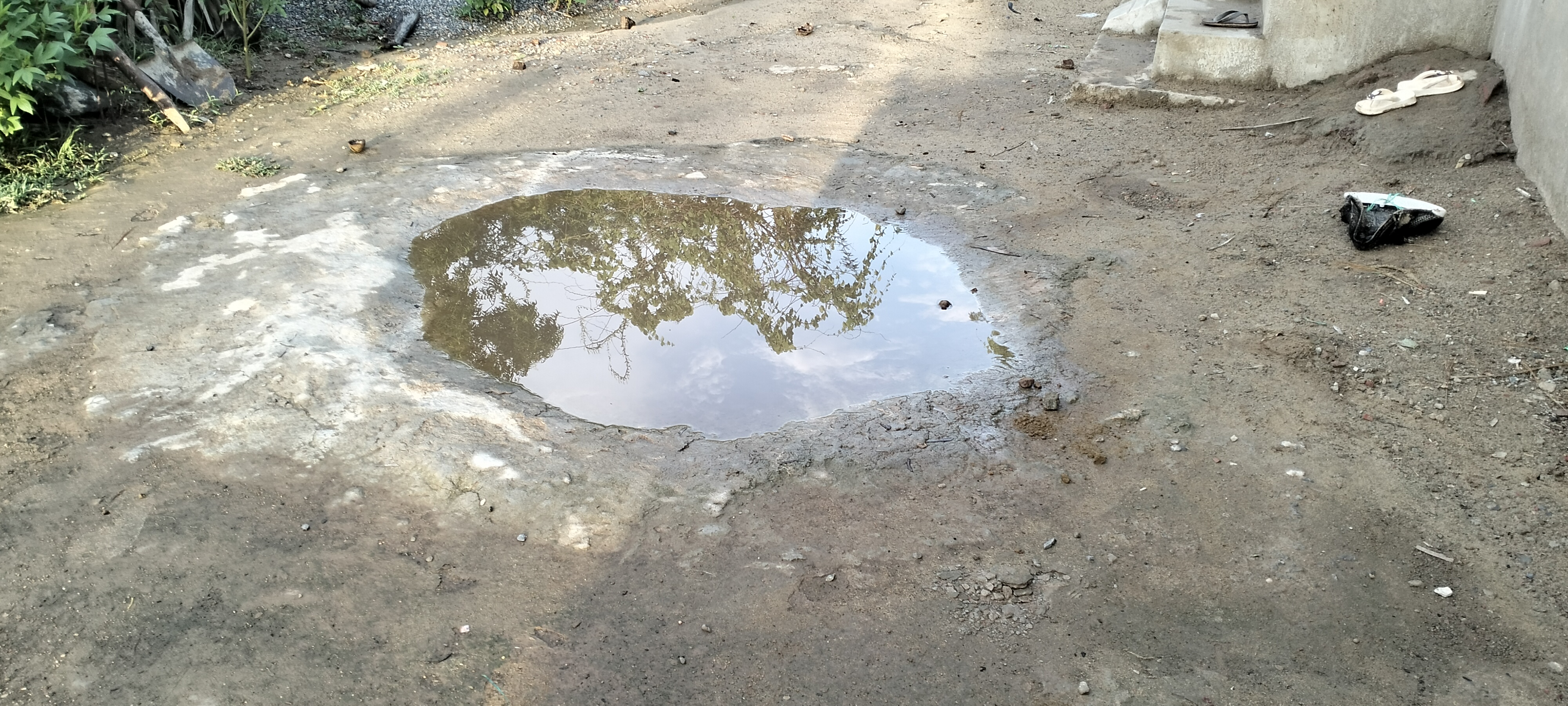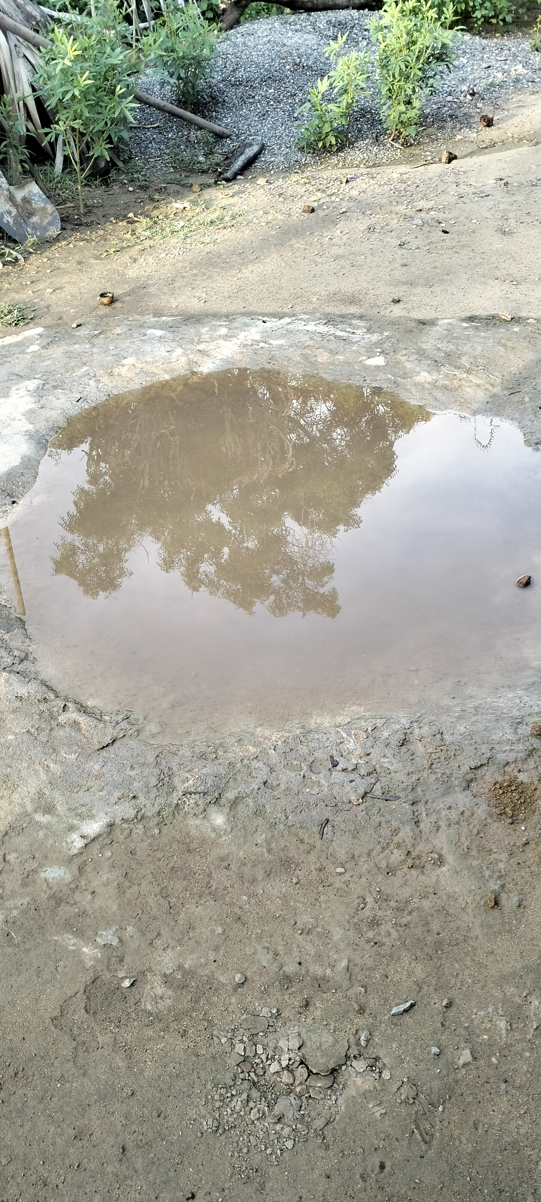 A small pond was seen near the house. It was a concavity where the cement used in the construction was poured, creating a small pond.