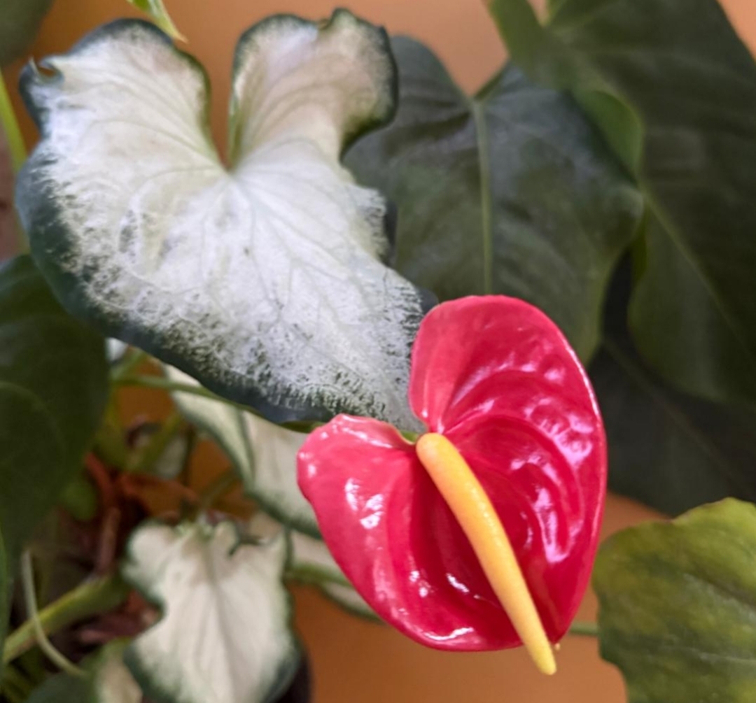 Hoy me complace compartir con ustedes estos hermosos corazones entre la hoja de la planta y la flor, llamada cala enforma de corazón.