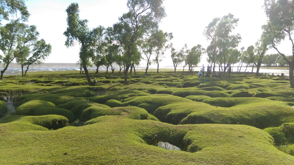 Guakhali beach has varied the variety of green carpet grass. The open grasslands of green grass near the sea will surely add to your eyes. The green grass on the beach is naturally awakened in this field, the curved pipe water is filled with the tide. The green grass surrounding it and the small canal in its entirety will impress anyone with this view.