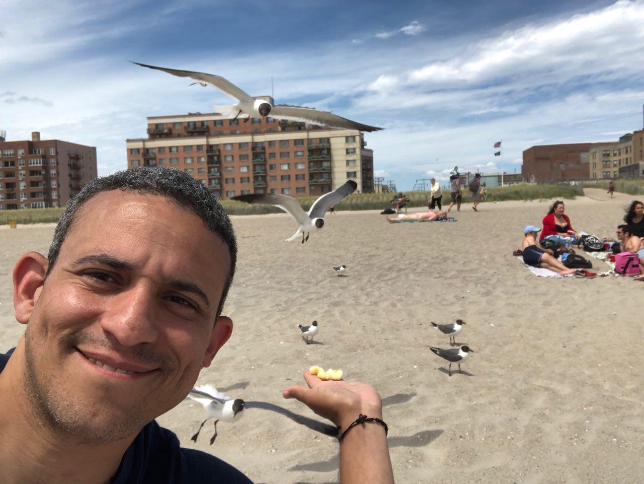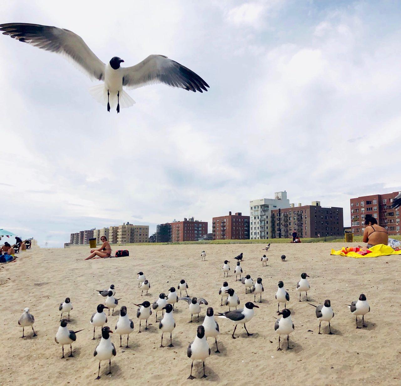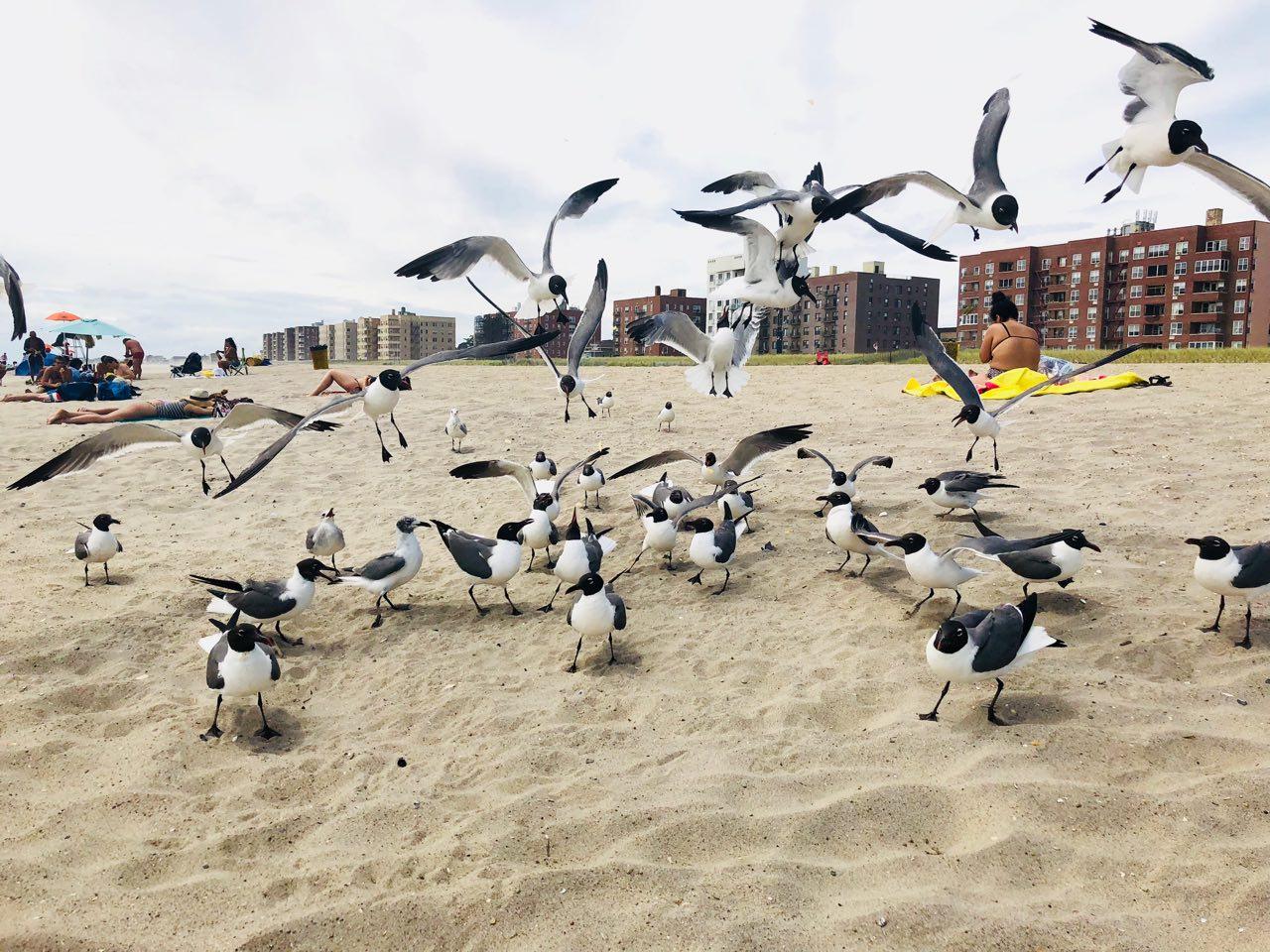 As a Queens native I have noticed that the seagulls here are getting more aggressive or maybe... smarter too?. On Saturday I visited Rockaway Beach with some friends and family, we notice how the birds were all trying to sneak to everyone's food stash, to the point they scared a small child eating her potato chips making her throw the bag away scared witch cost all the birds to rush in for the chips. I grabbed the bag to get the birds away from all of us and although I don't condone feeding wildlife, I just wanted to get birds away from all of us. I used the remaining chips and here are some photos so you can see for your self.