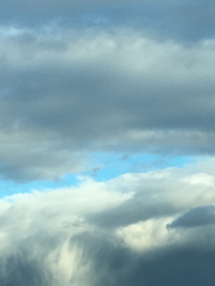 I took this photo of the daytime sky because a few minutes before it was s bright blue sky. How quickly the clouds can come and change everything. After enough time passes, the sky will always be blue again...