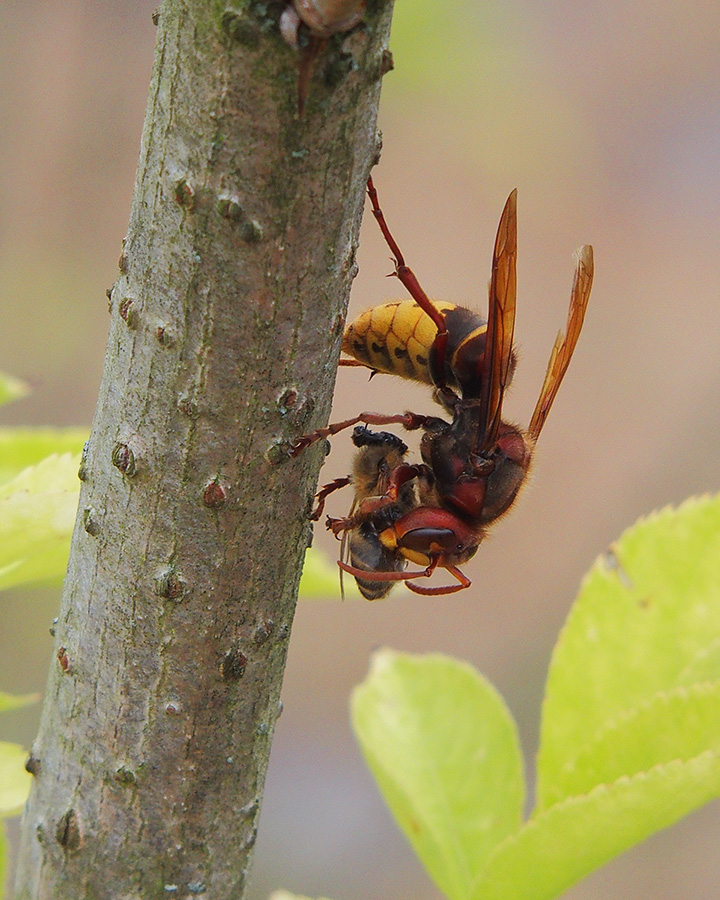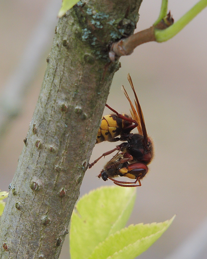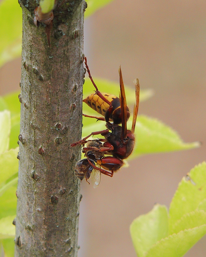 This hornet has caught a bee: