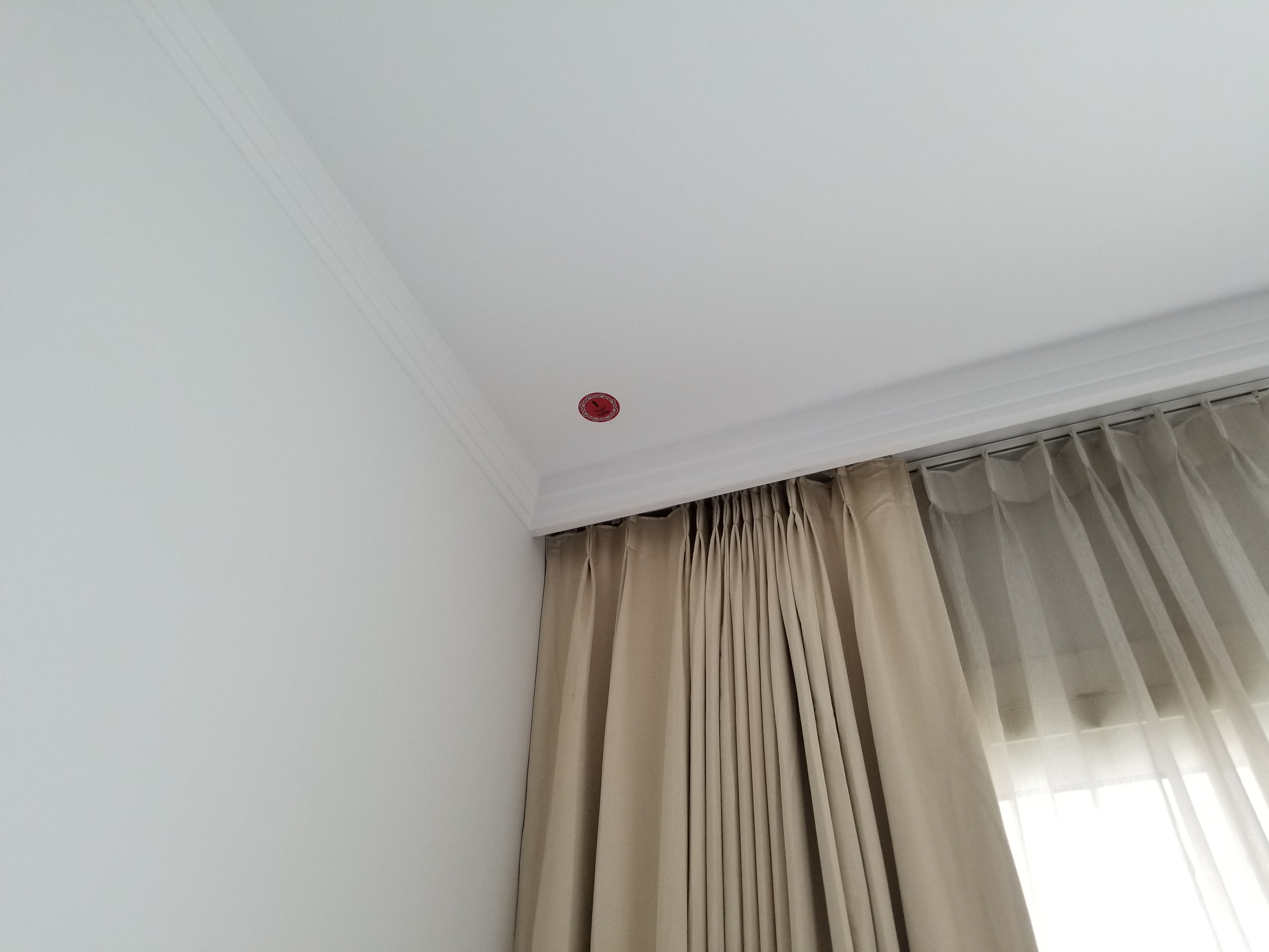 I saw this sign on the ceiling of my hotel room and I was thinking that is some kind of safety warning or approval certificate.