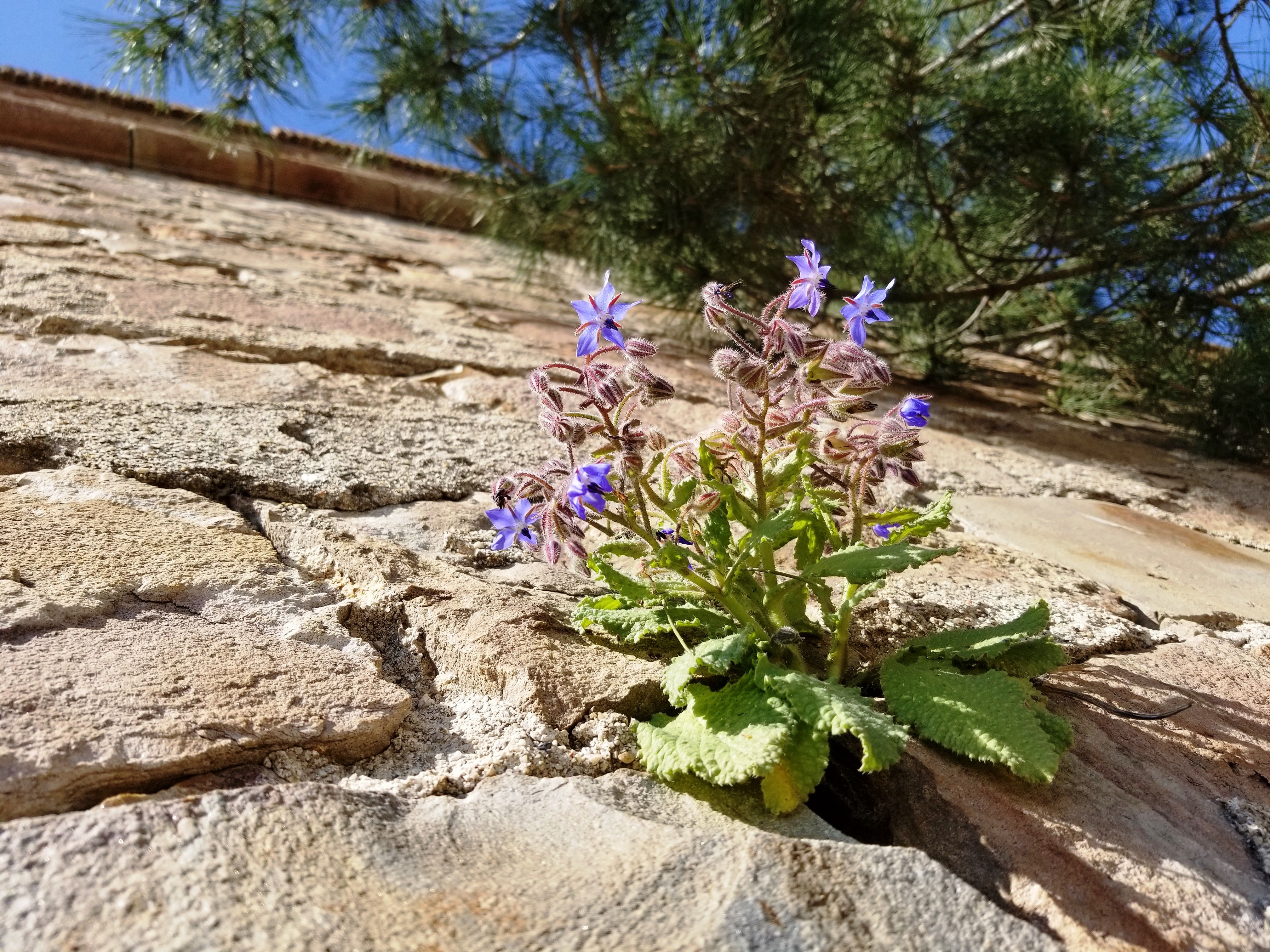 There is always a place in the world for the flower to grow. Even in the wall crack. I don't know how it manages to survive in the hot sun without water and soil but it looks happy and healthy to me.