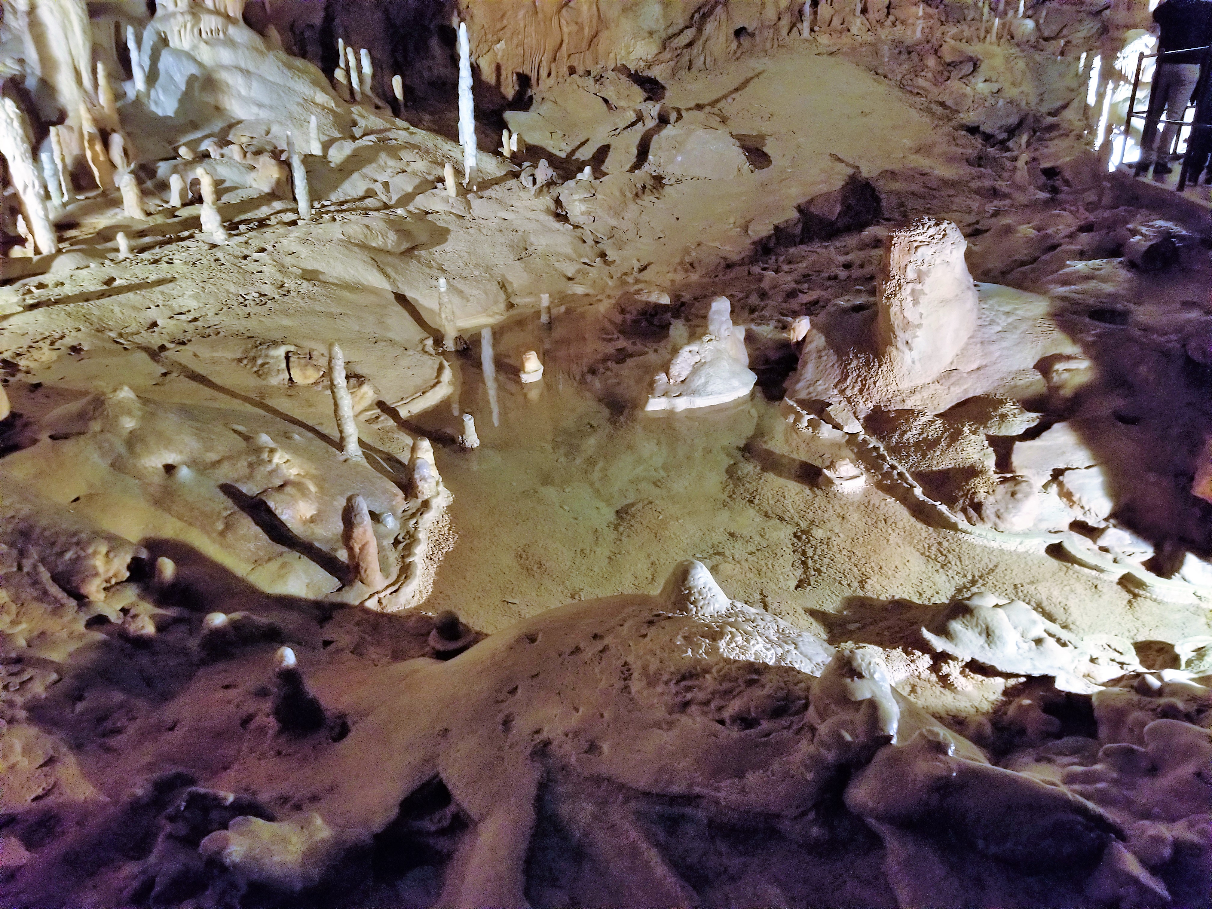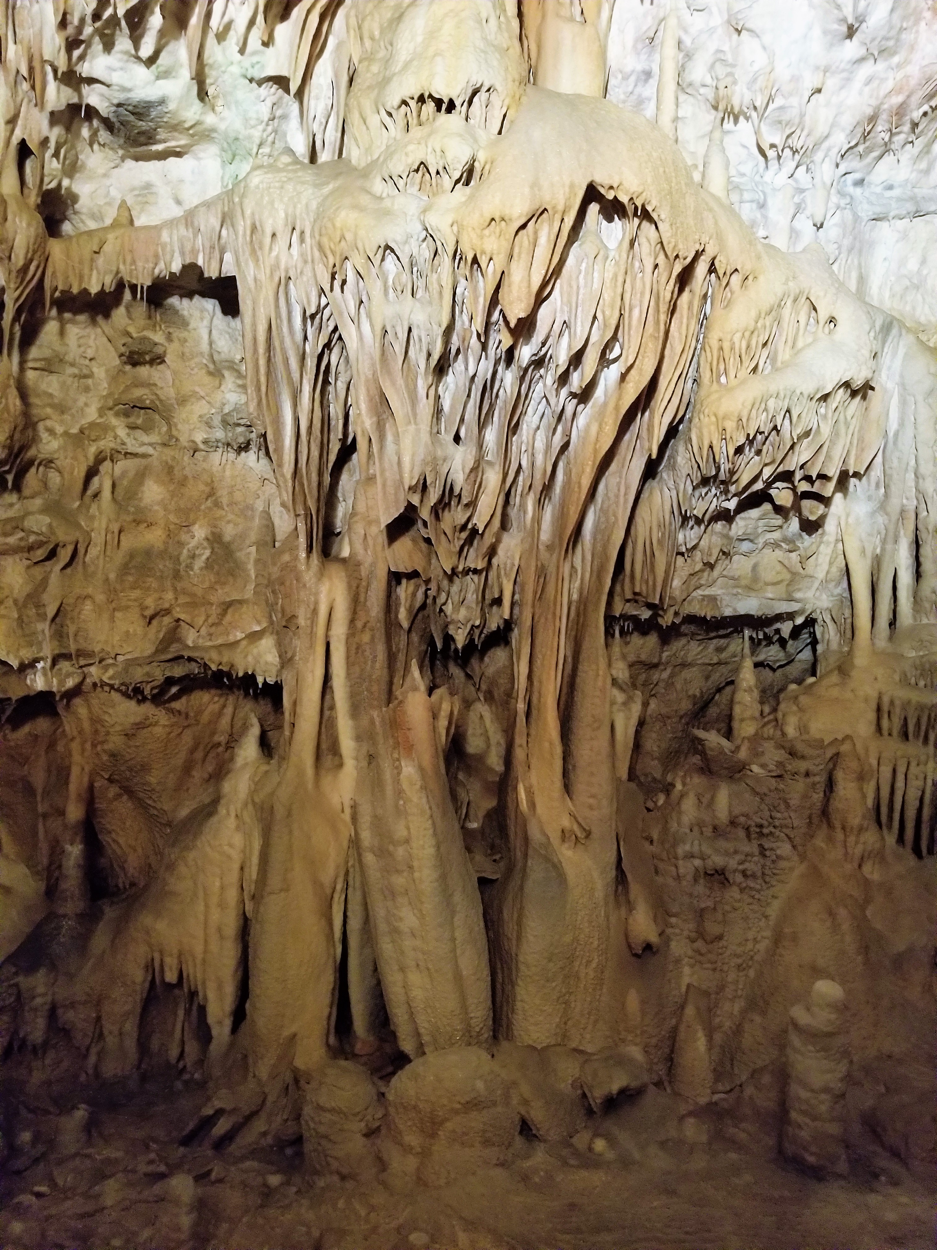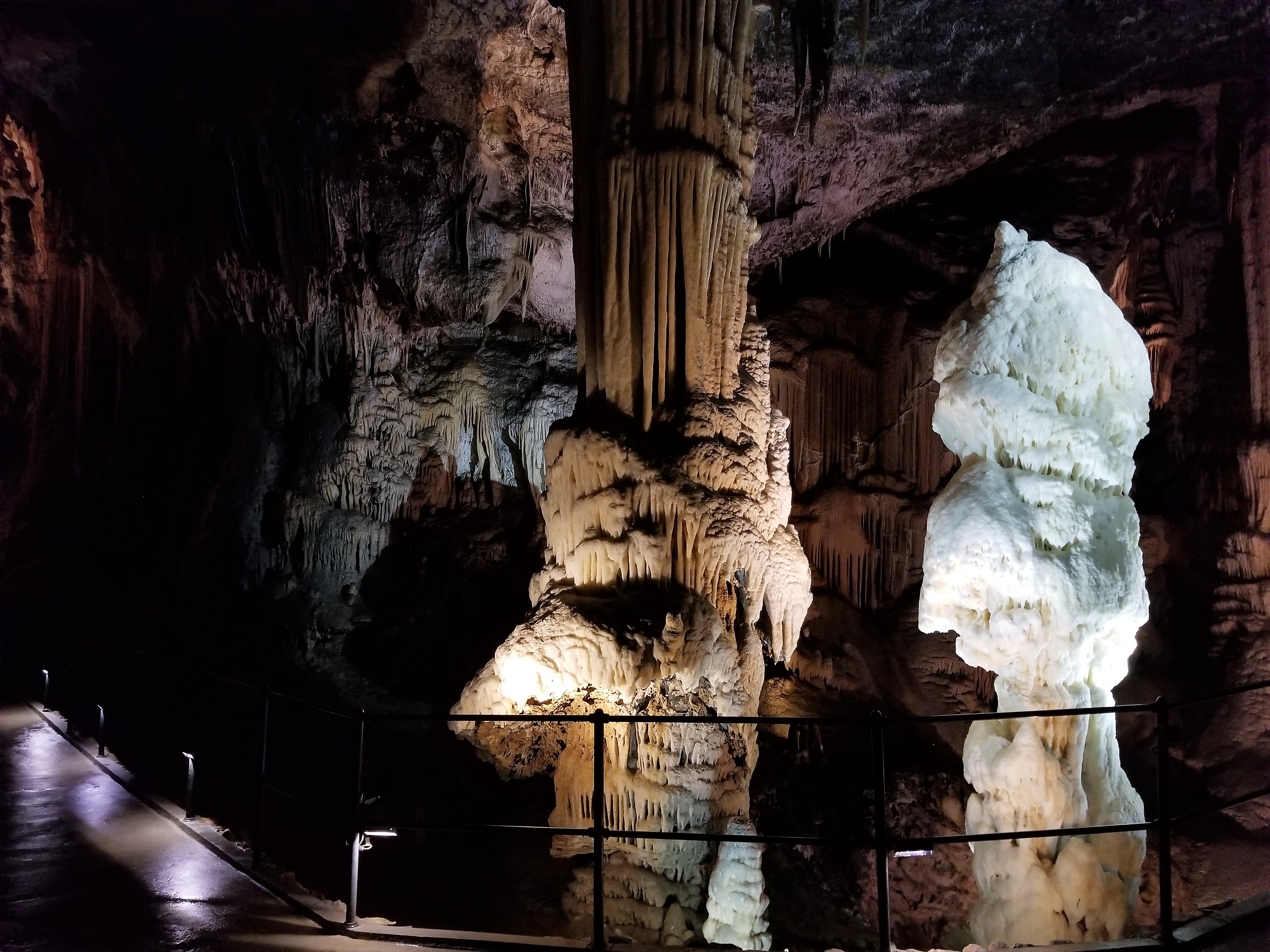 The most known and famous stalagmites in the cave of the different color standing side by side.
