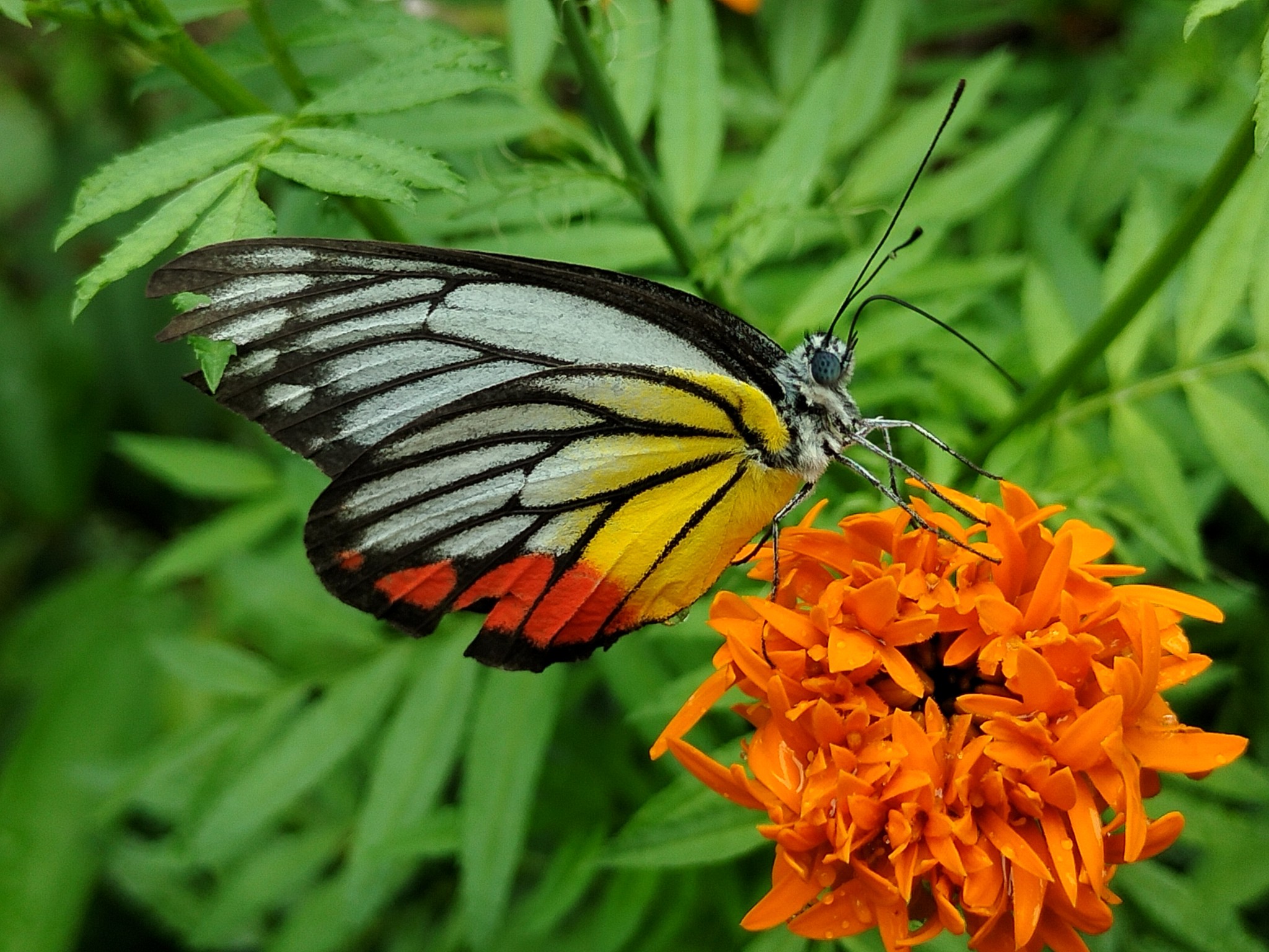Among the dense, silent green foliage, I found a painted jezebel butterfly perched gracefully on a marigold petal. I slowly approached the plant where it had landed. I saw it meticulously examining each petal. It seemed to be preparing for a delicious breakfast this morning.