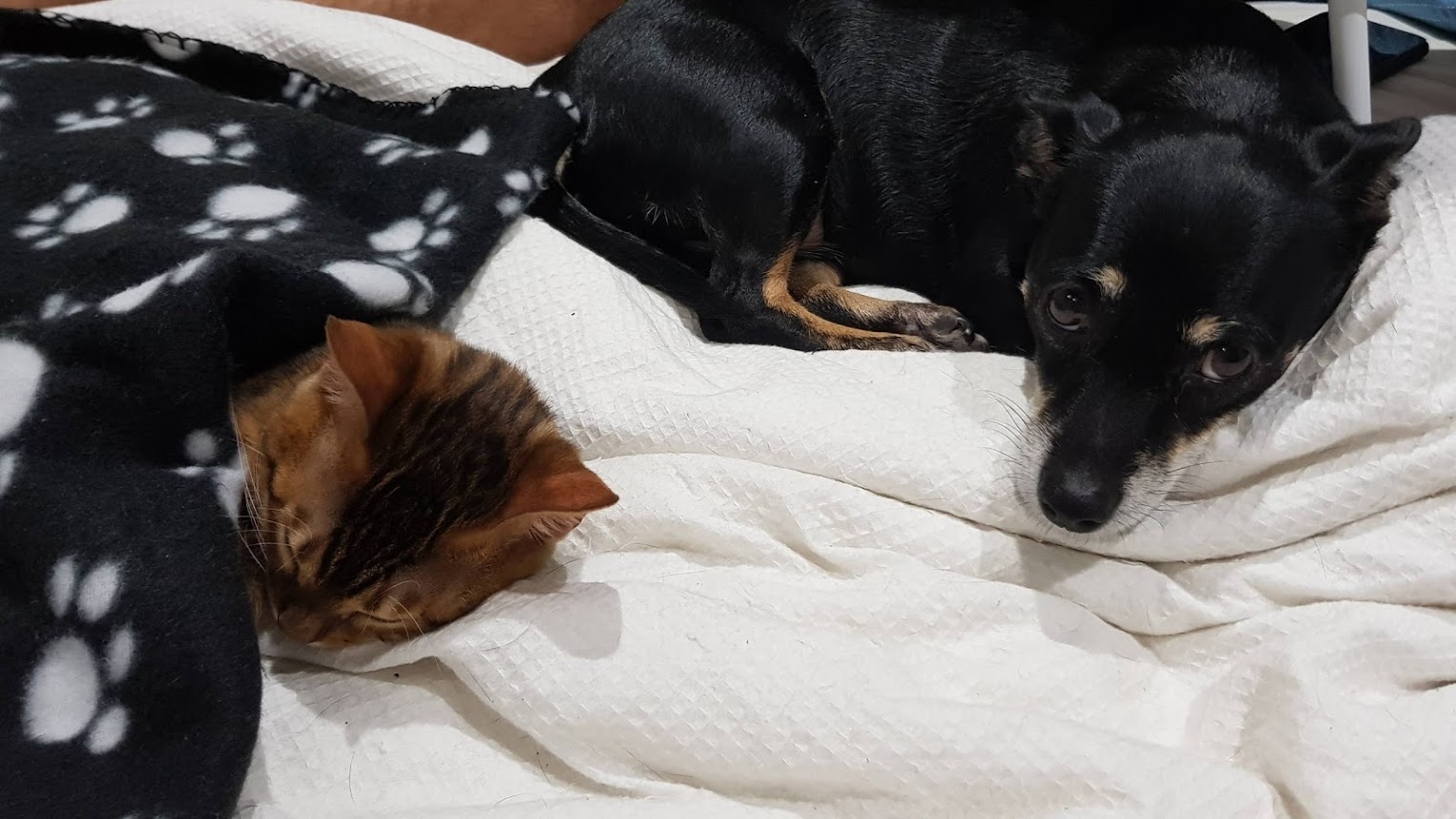 Hello everyone! Samson here, I was just taking a nap with Brandy my Chihuahua when my owner brought in my favourite blanket. It had just been washed and dried. It was so clean and warm and fluffy that I could not keep my eyes open. I love it!!!