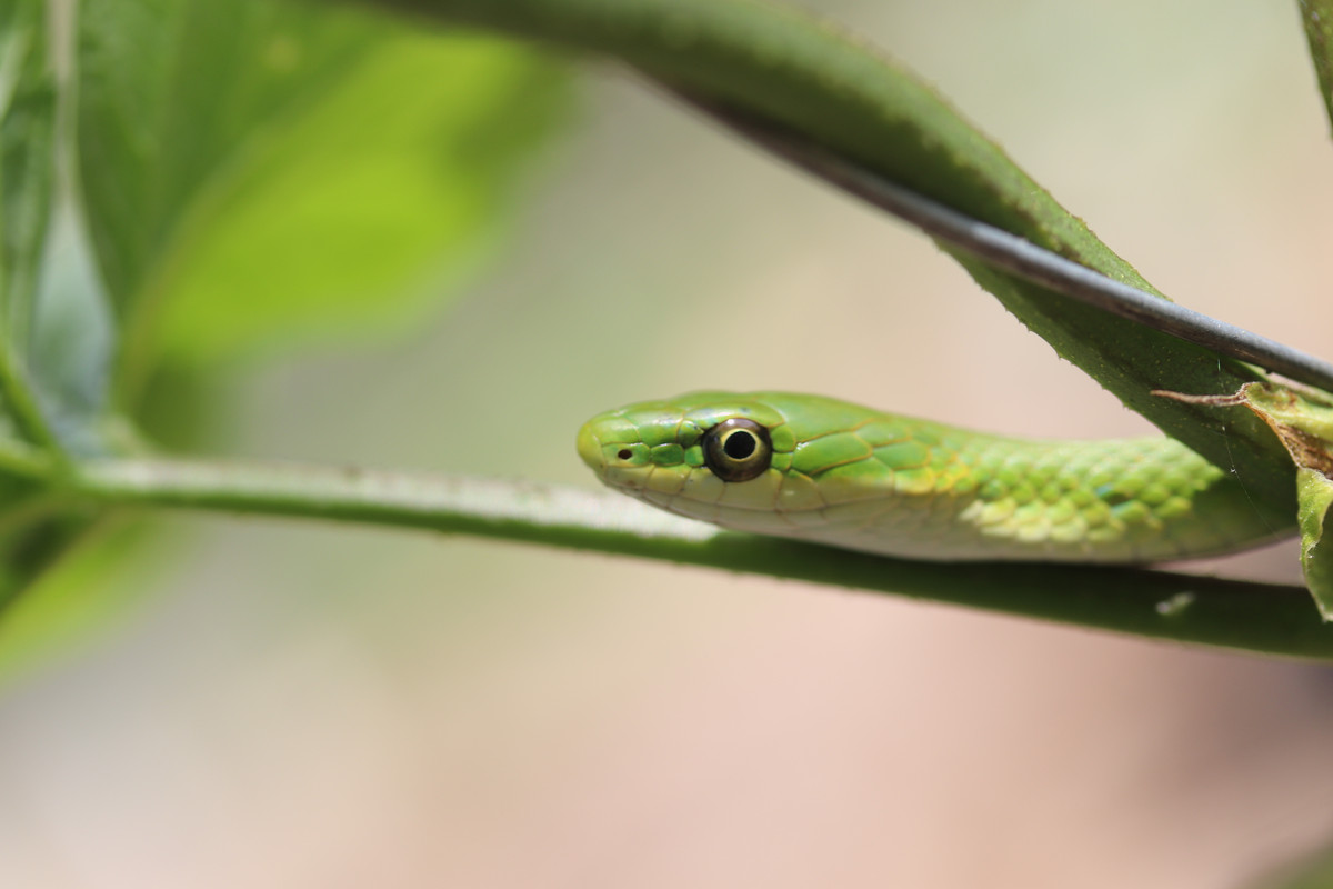 If you didn't know that you were supposed to be looking for a snake in that photo, odds are you'd miss it. Other Little-Peppers did, but Buddy-Pepper stopped, pointed, and started making the "Sssssssss" sound. Smart little bugger!