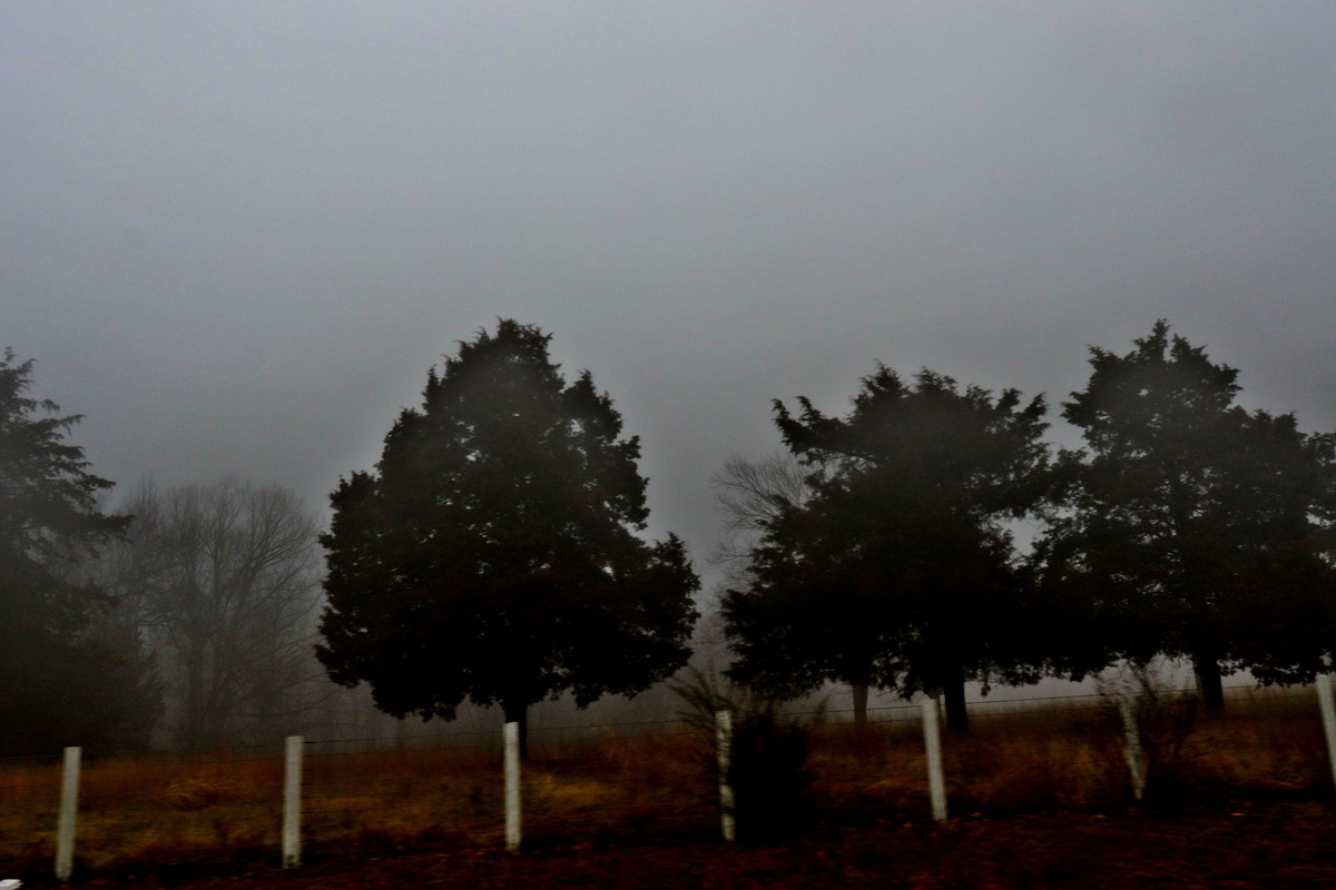 Well, not really, but the photos may look that way. After a slight downpour earlier, a lot of the area became covered in a thick fog. I tried to seize the moment and take some photos, focusing on how different everything looked. I sought out various fence lines, trees, and silhouettes, and even angled the camera slightly just to throw things off a little more.