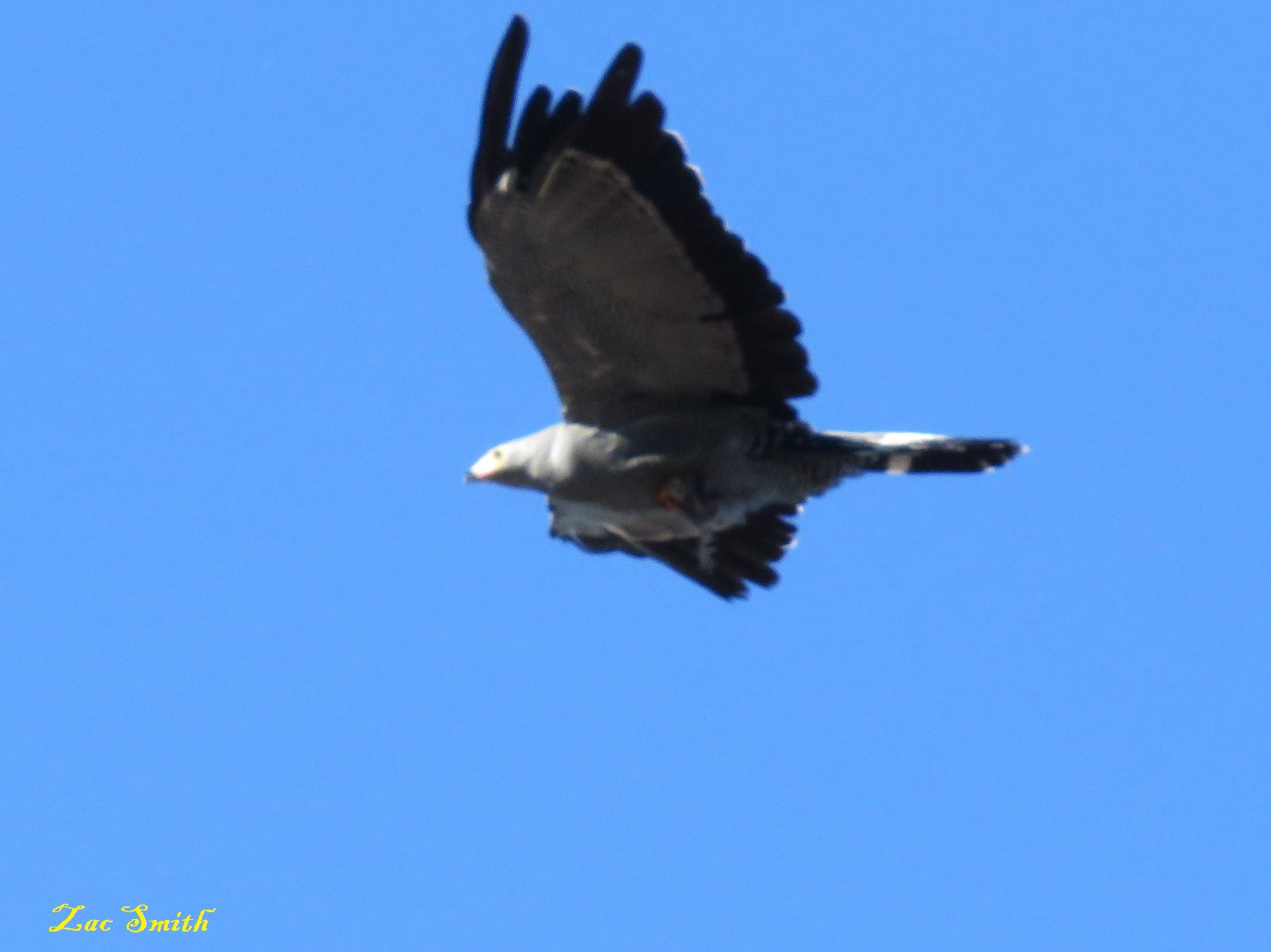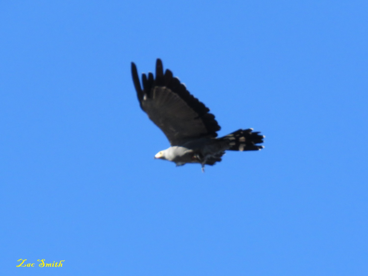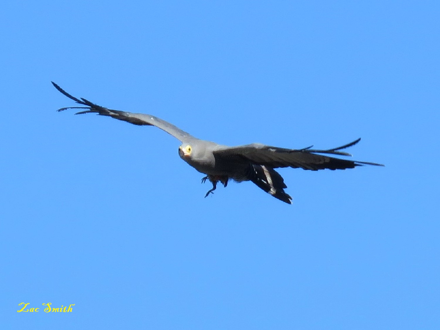 He saw me and I saw him! This is a Gymnogene (Harrier Hawk). All birds fear him!