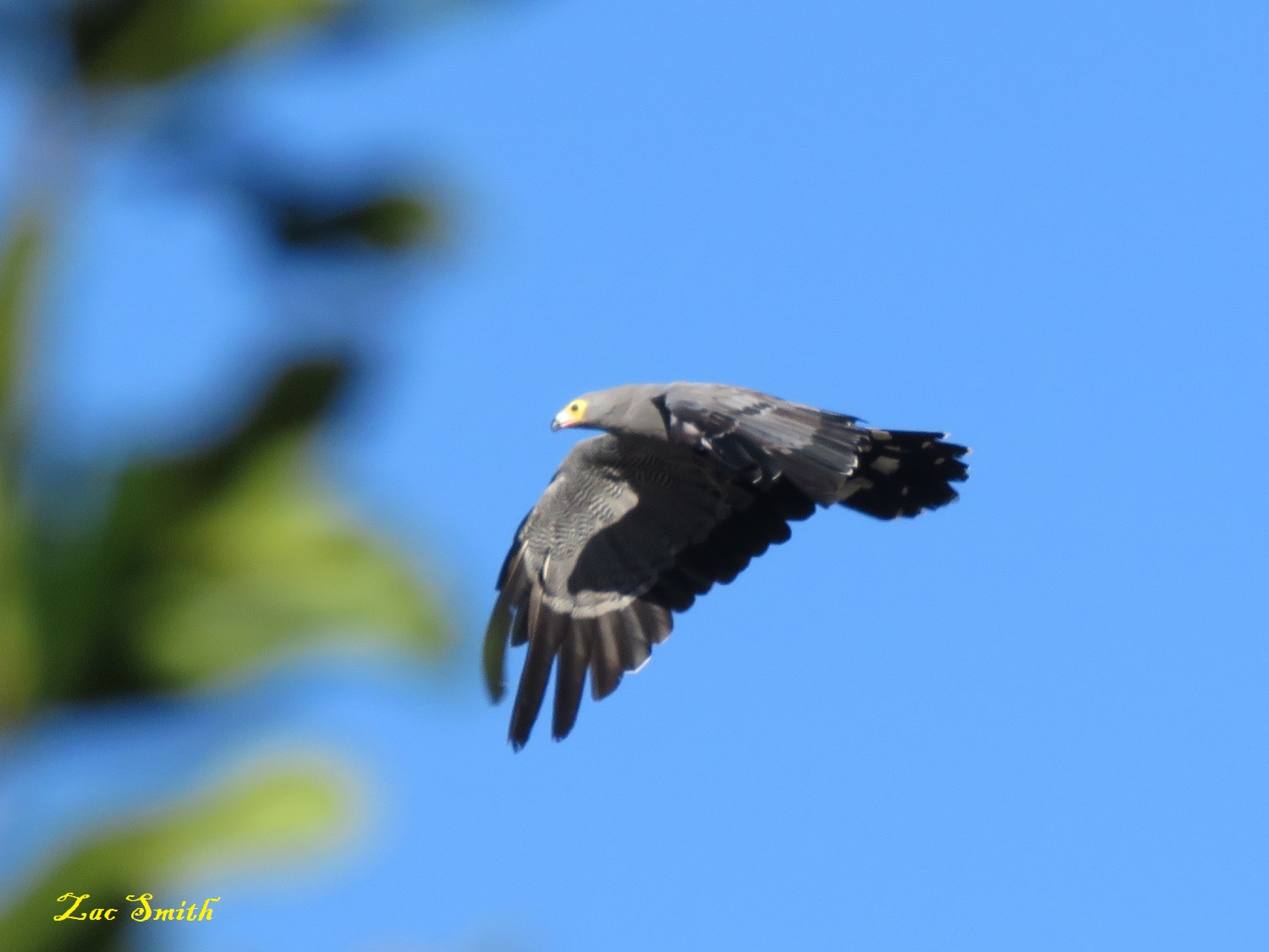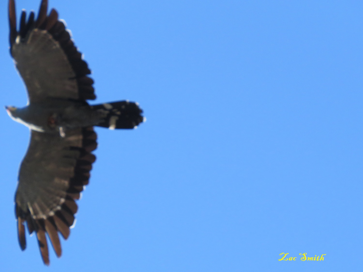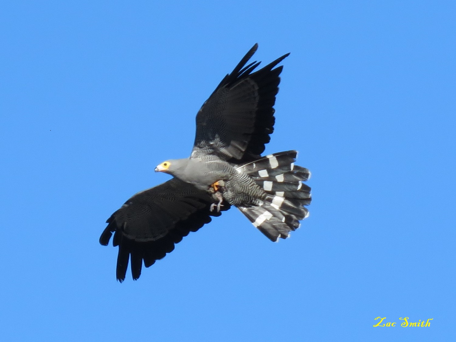 He saw me and I saw him! This is a Gymnogene (Harrier Hawk). All birds fear him!