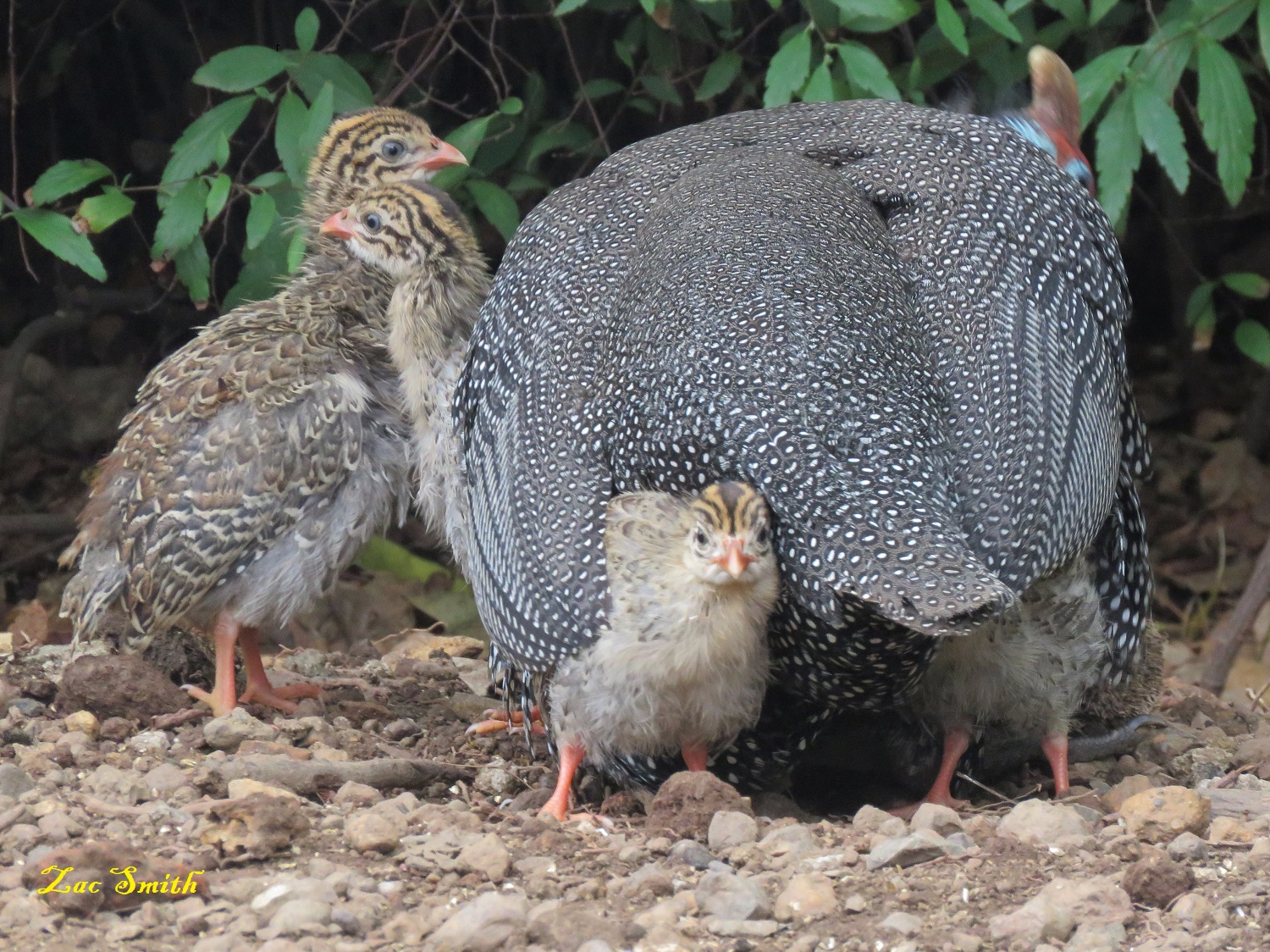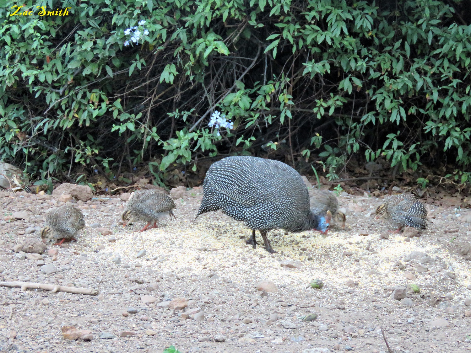 I love to snap them in flight, but I think that they have taken enough babies over here in the big garden. There were two clusters of 12 guinea fowl babies each and in the first there is only one left. In the second there is only four left.