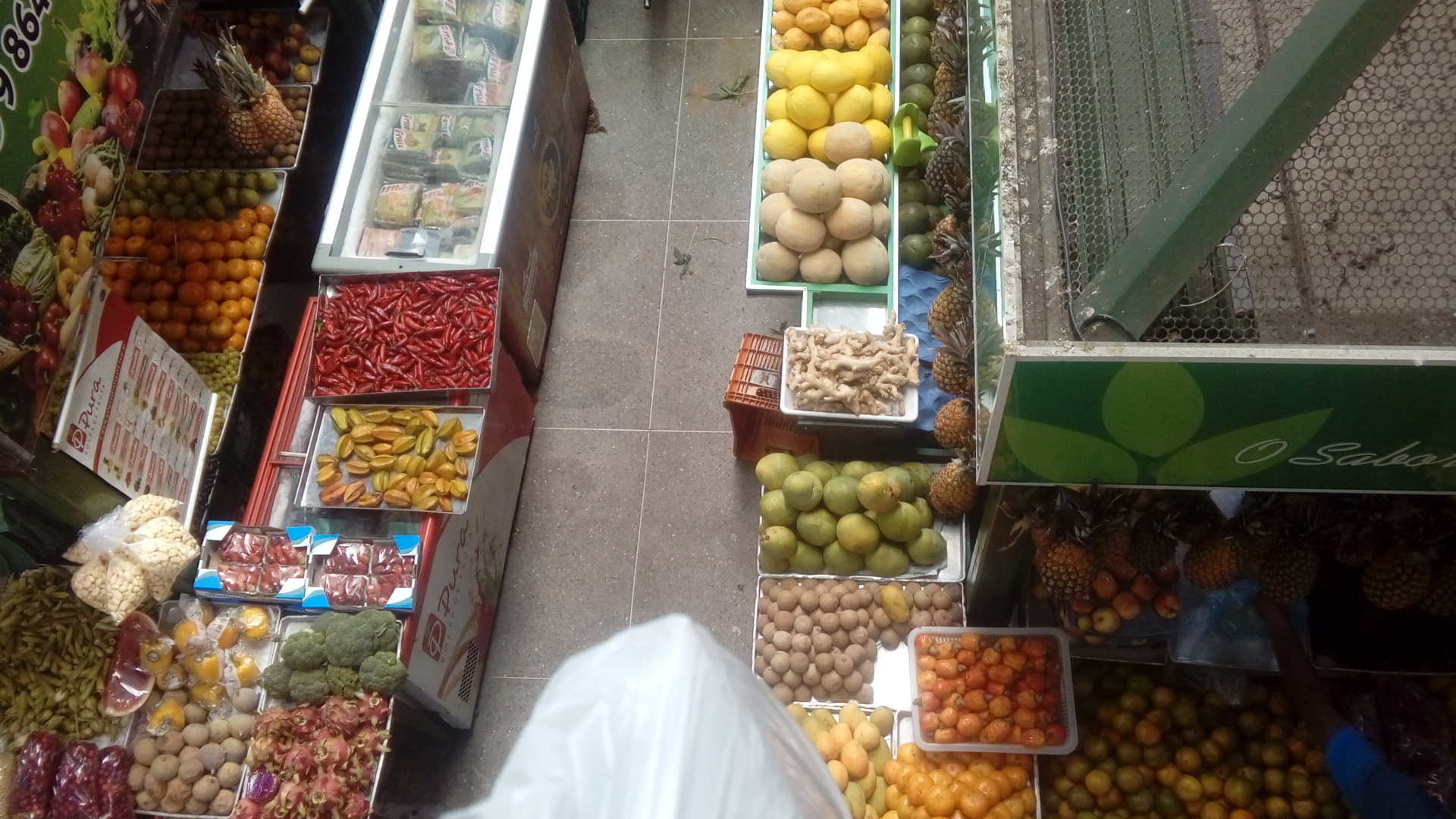 Logo entrei e dei uma volta geral passando pelas bancas de frutas com grande variedade especialmente as locais, tais como cajá, cajú, côco, acerola, goiaba, maracujá.